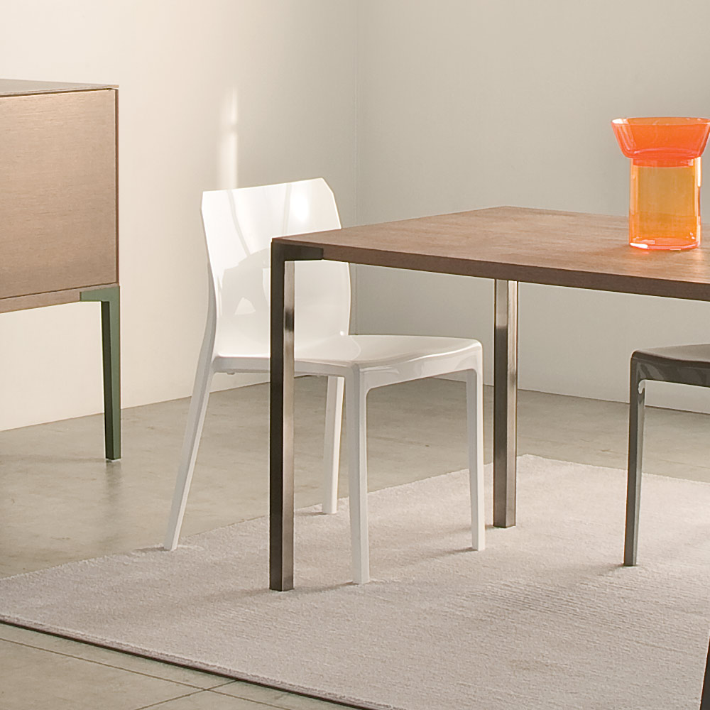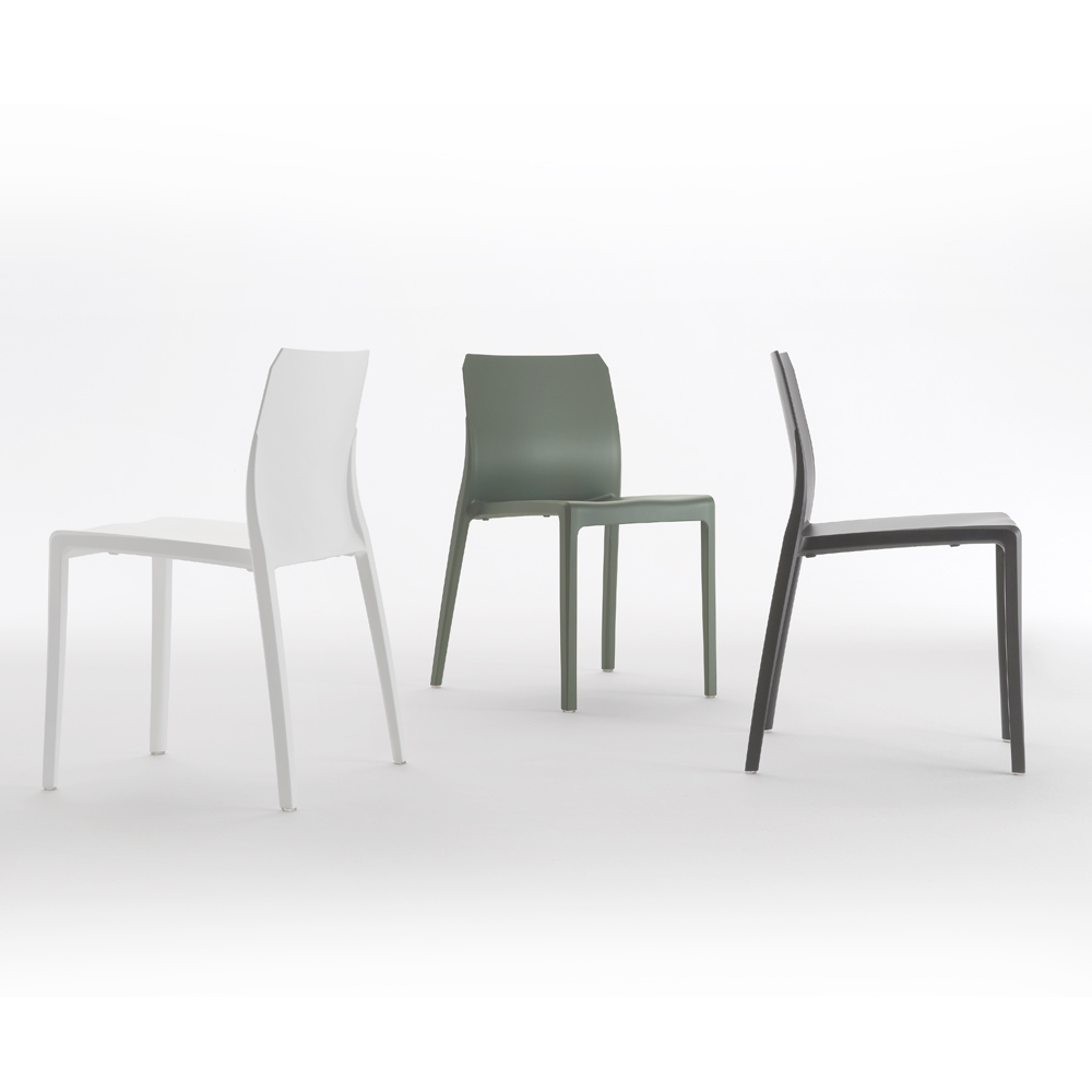 La silla tiene una cuidada forma para ofrecer el máximo confort ergonómico , permitiéndole mantener una postura relajada y natural durante periodos prolongados. Su superficie lisa y su diseño sinuoso son una invitación a disfrutar de momentos de relax o compartir agradables conversaciones alrededor de una mesa.