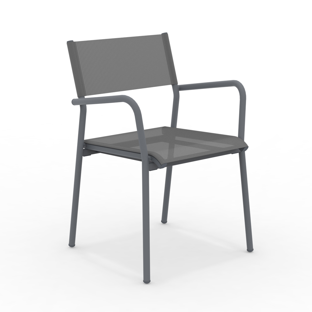 El asiento y el respaldo de batyline ofrecen una comodidad óptima gracias a su transpirabilidad y resistencia a los agentes atmosféricos, lo que garantiza un uso prolongado sin necesidad de mantenimiento. Los reposabrazos integrados añaden un toque de confort, haciendo de esta silla la silla perfecta para largos momentos de relax al aire libre.