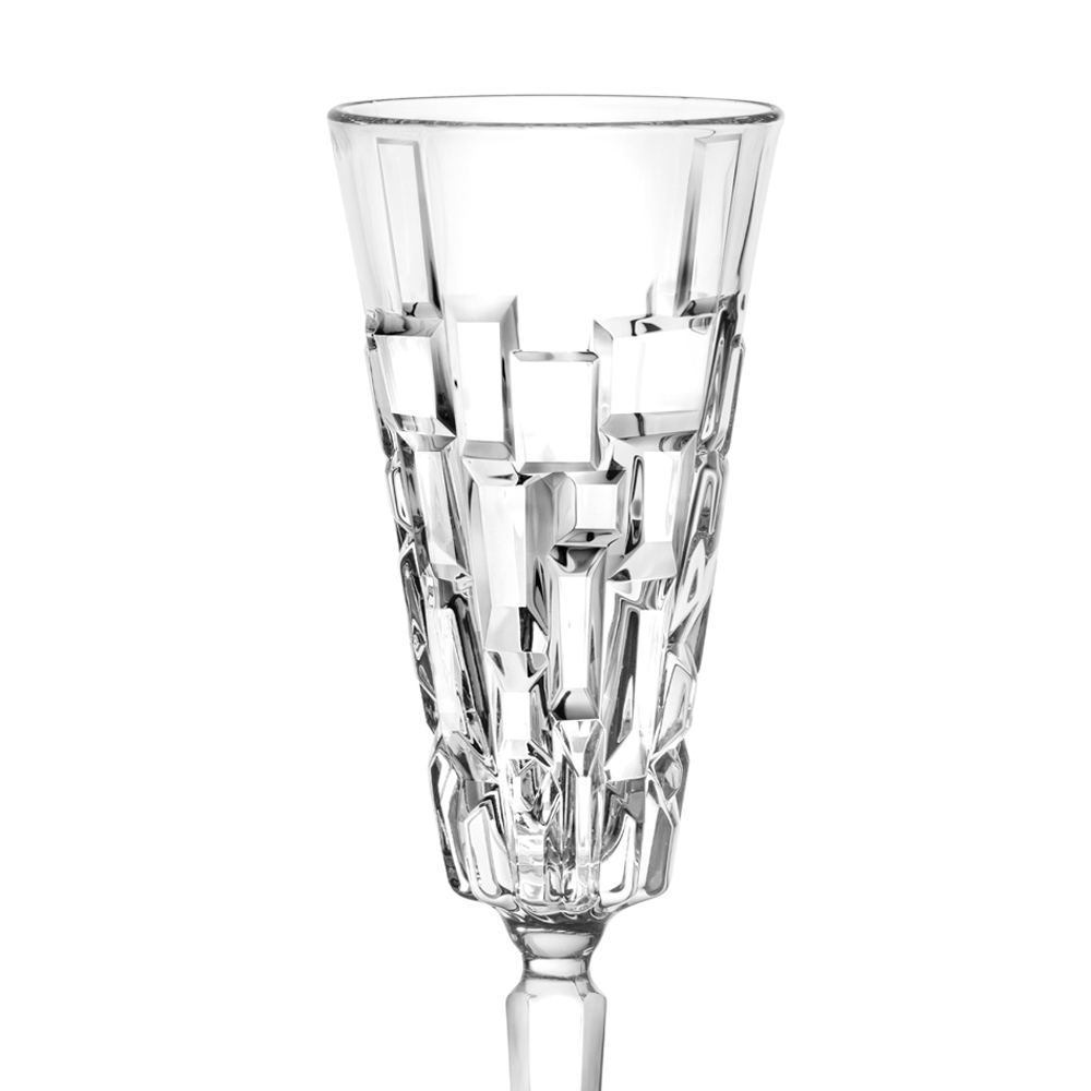Juego de copas de flauta en cristal ecológico decoradas con tallas, 12 piezas fabricadas en Italia.