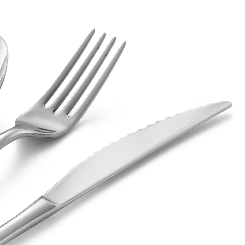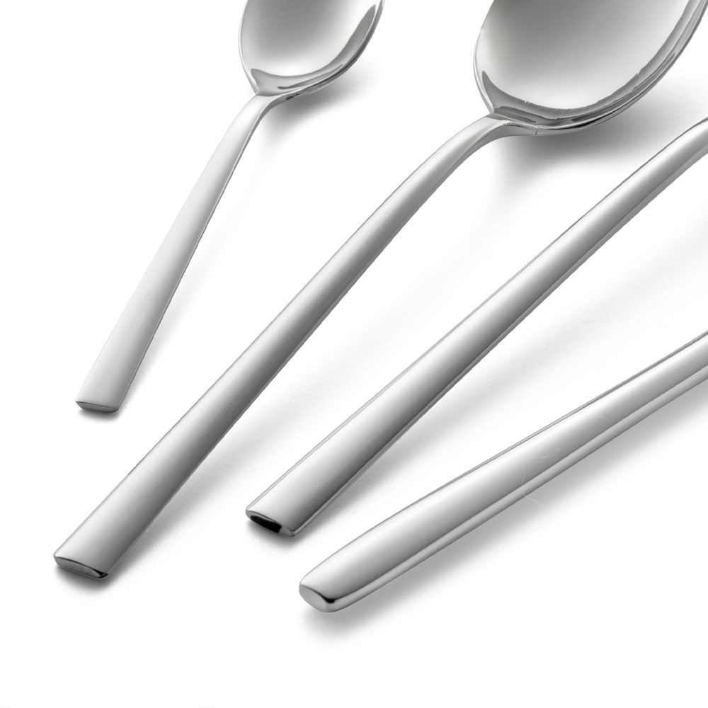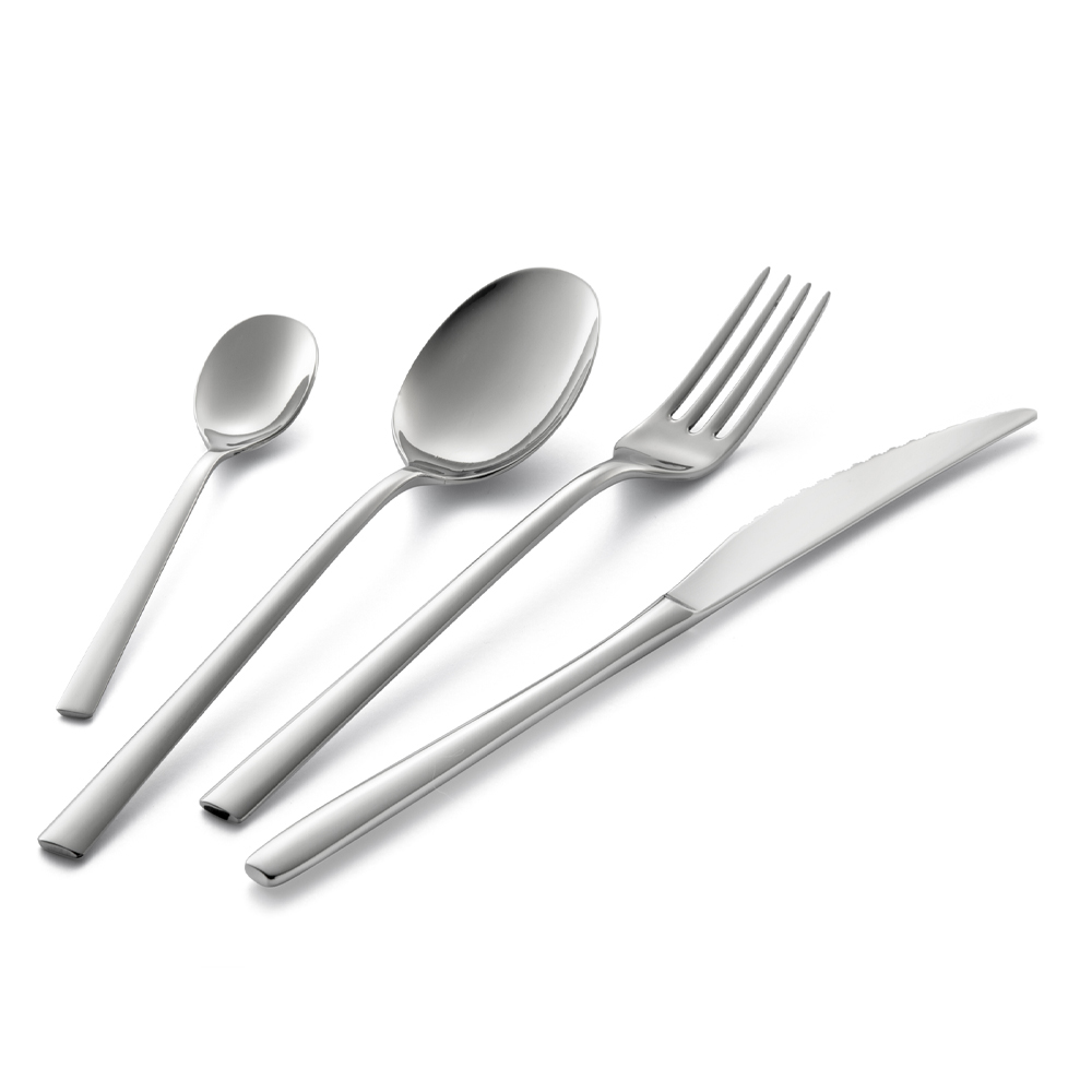 Juego completo de cubertería cuadrada de acero inoxidable pulido, 24 piezas fabricadas en Italia.