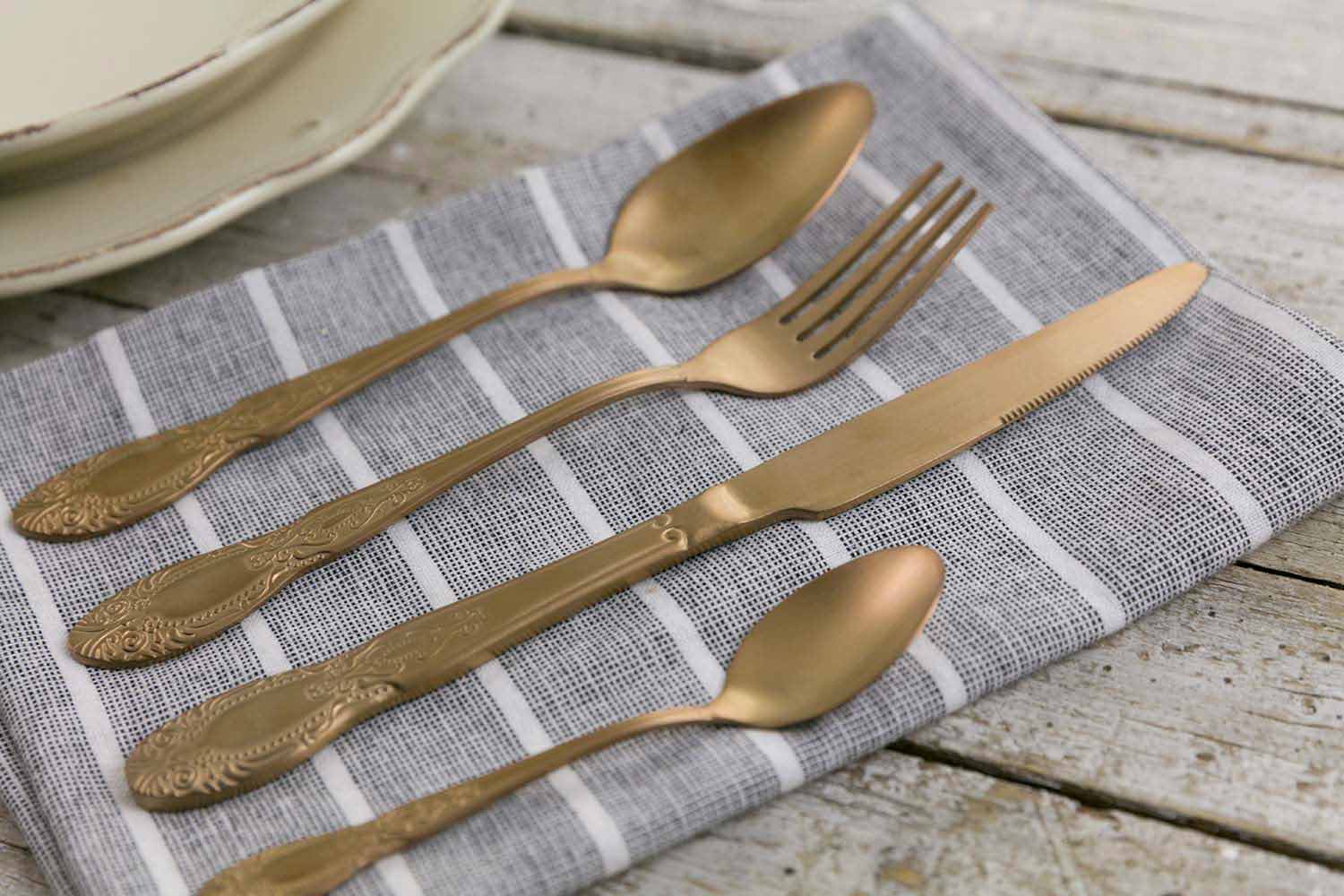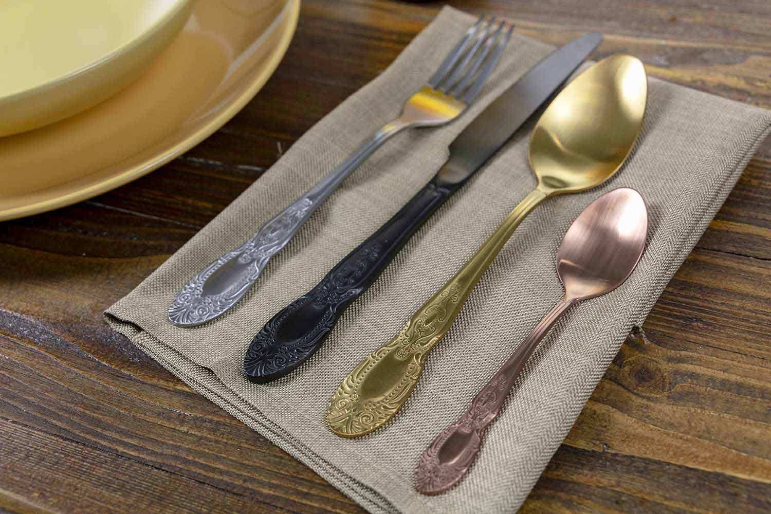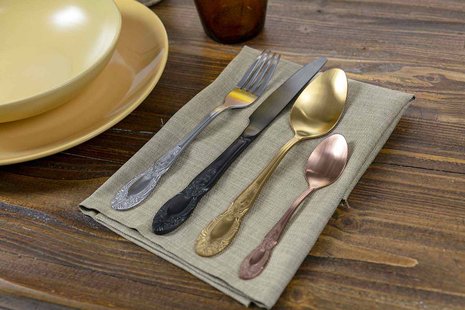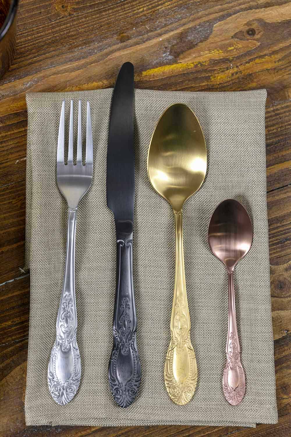 | Medidas | Tenedor: l. 2.5 x p. 20,5 x h. Cuchara de 2 cm: l. 4 x p. 20,5 x h. Cuchillo de 3 cm: l. 2 x p. 23,5 x h. 0,5 cm Cucharita: l. 3 x p. 14,5 x h. 1,5 cm |