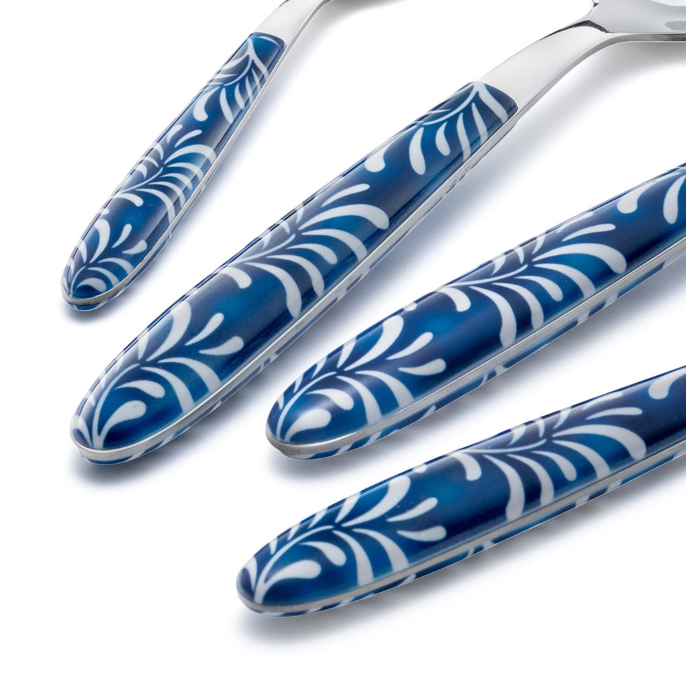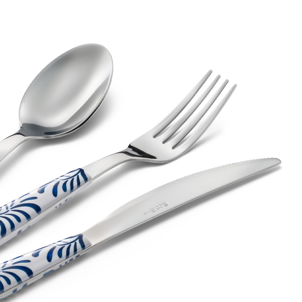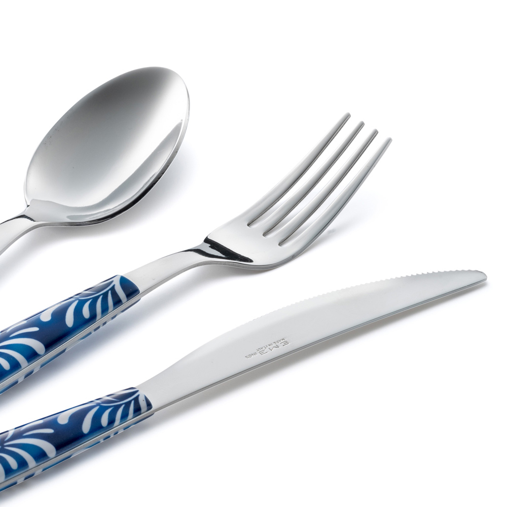Juego de Cubiertos de Acero y Plástico Decoración Azul o Blanco 24 Piezas - Alessandra