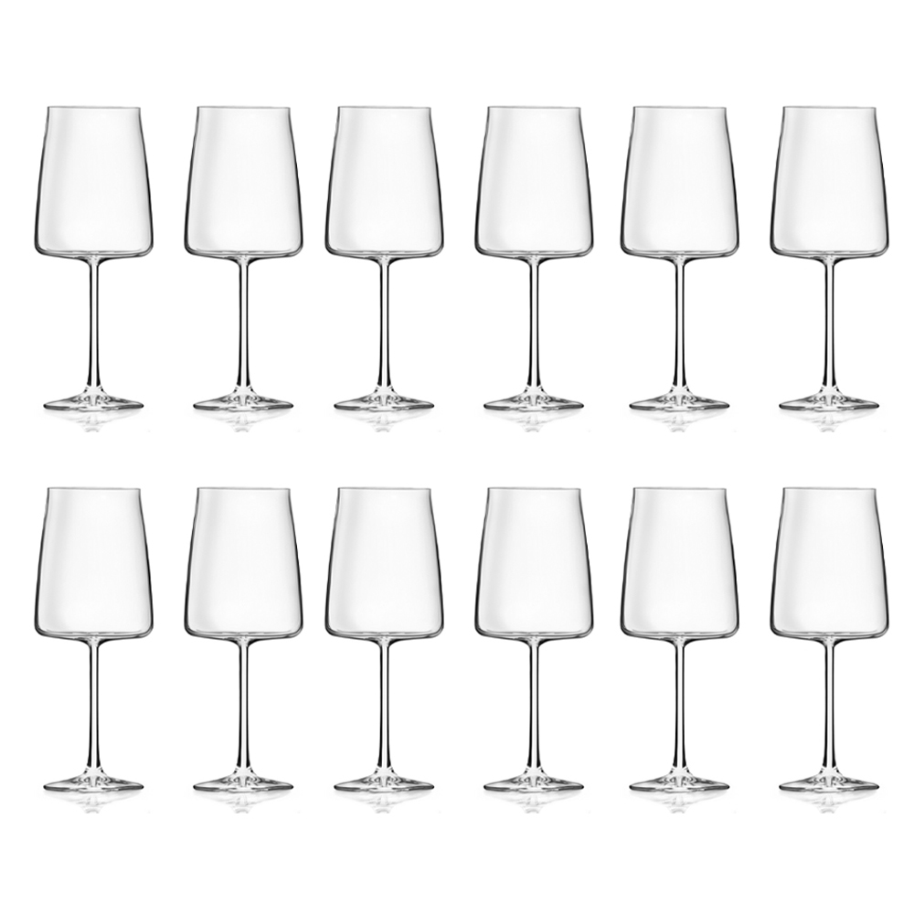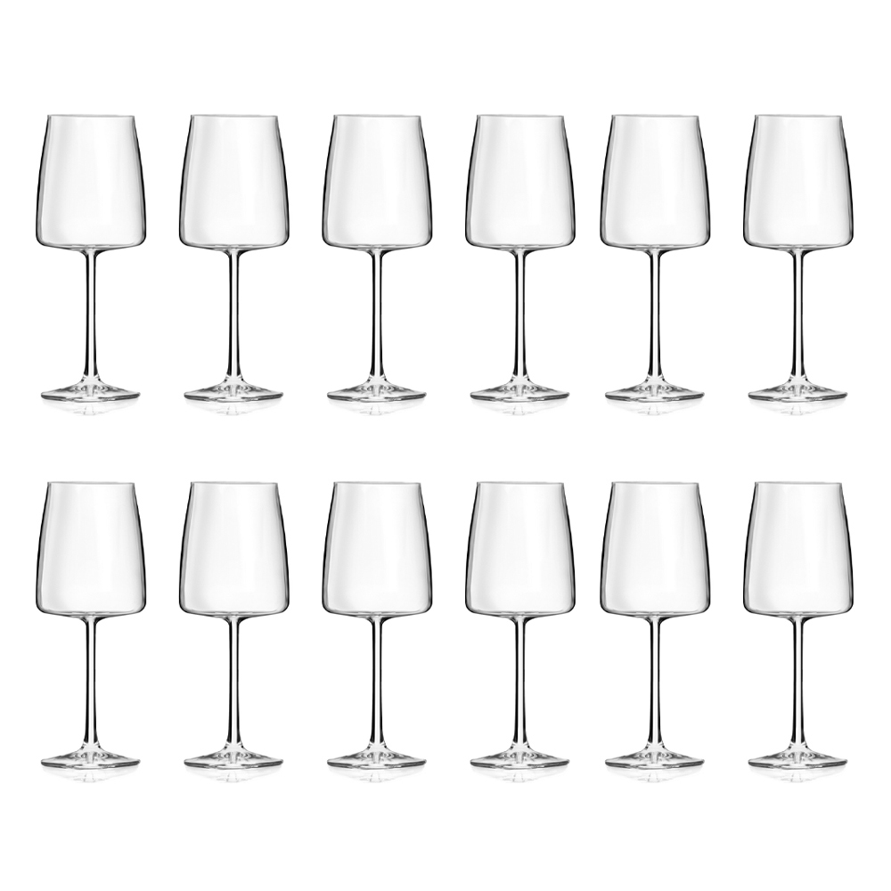 Juego de copas de vino de cristal ecológico minimalista de 12 piezas en 3 tamaños fabricado en Italia.