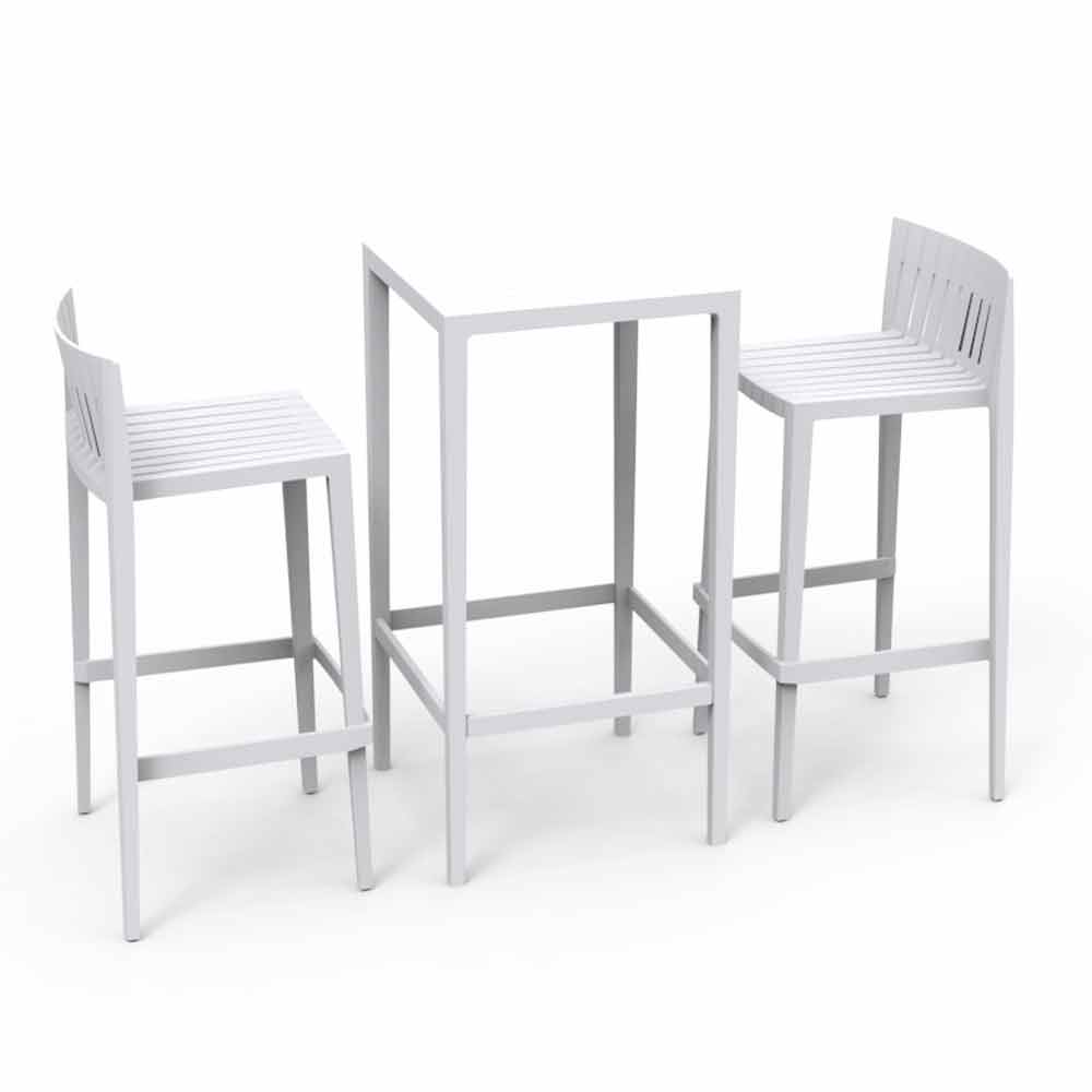 Vondom Spritz Conjunto de mesa de jardín y dos taburetes de diseño blanco Spritz by Vondom set de jardín de polipropileno con inyección de gas moldeado al aire y fibra de vidrio reforzada. Apilable.