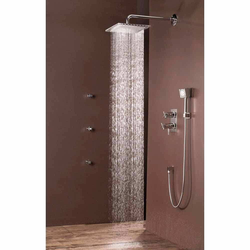 Set compuesto por: rociador Dream Cube 300 x 300 mm, auto-limpiador, con brazo de ducha de latón 90°Ø 28 x 500 cm con rosetón 1/2 M.
