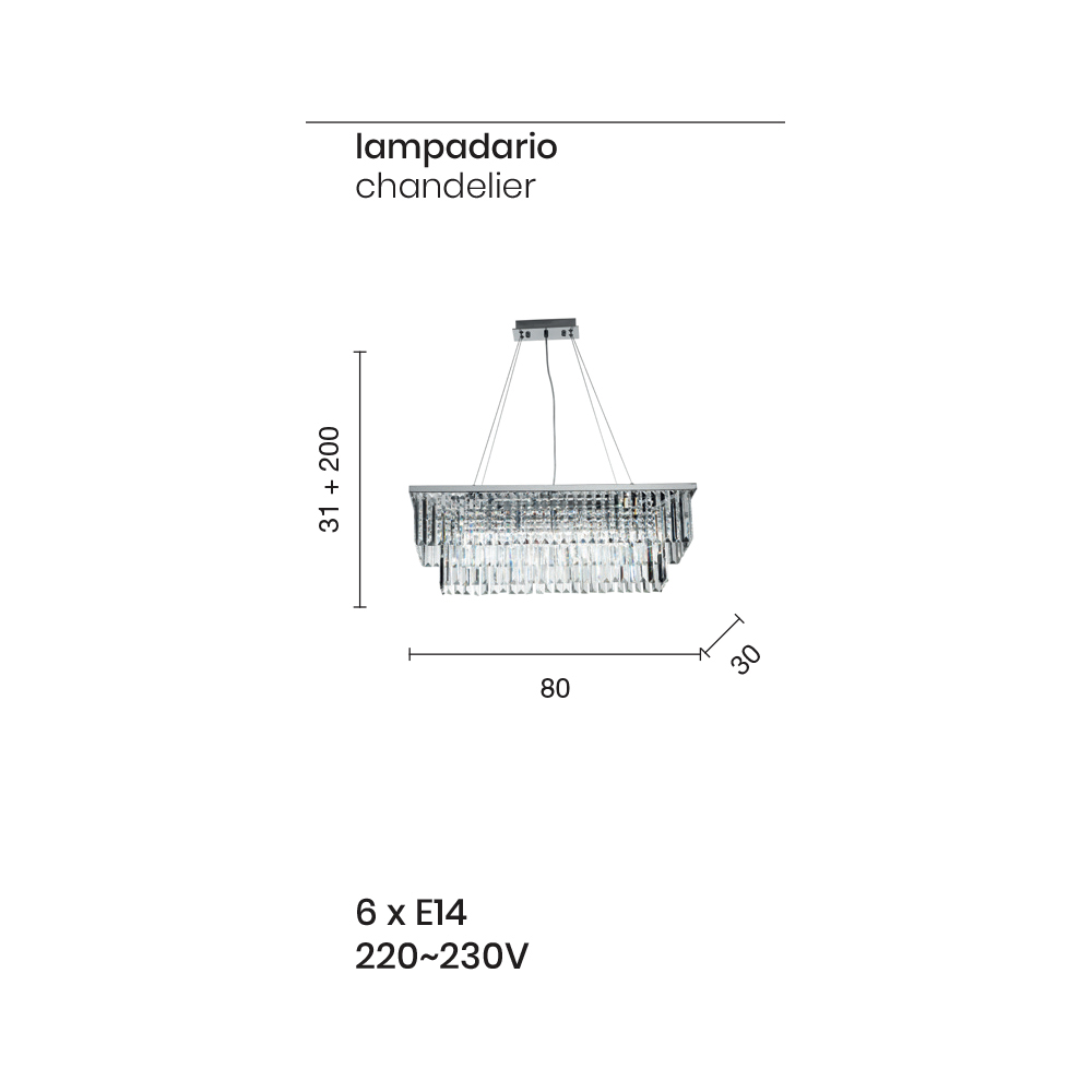 • L 80 x P 30 x H 31+200 cm (6 luces)