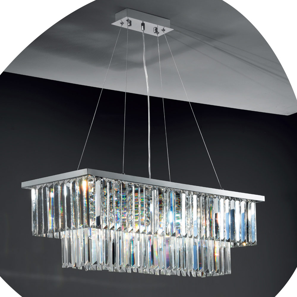 Fina lámpara de araña en metal y cristal tallado, diseño de lujo made in Italy.