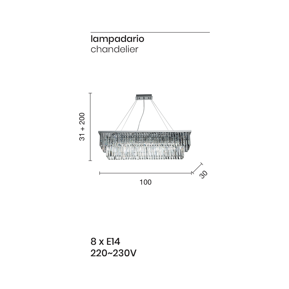 • L 100 x P 30 x H 31+200 cm (8 luces)