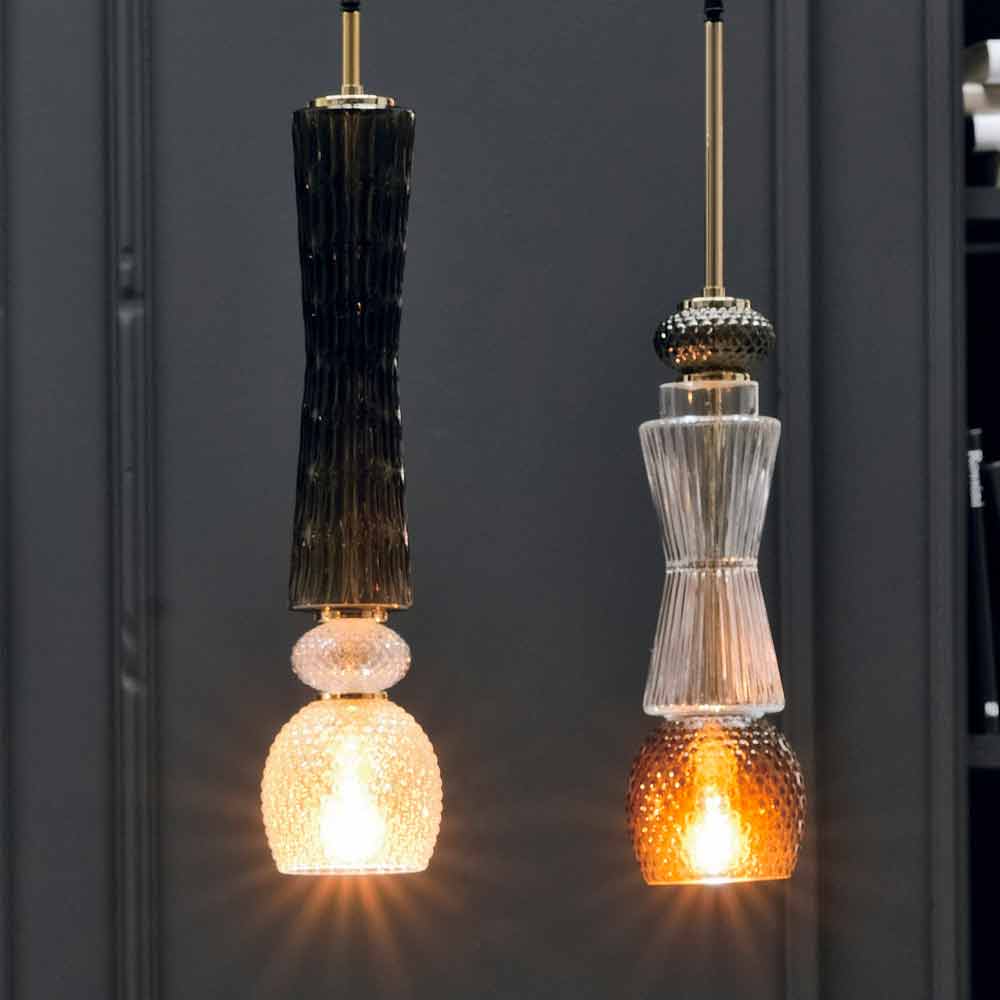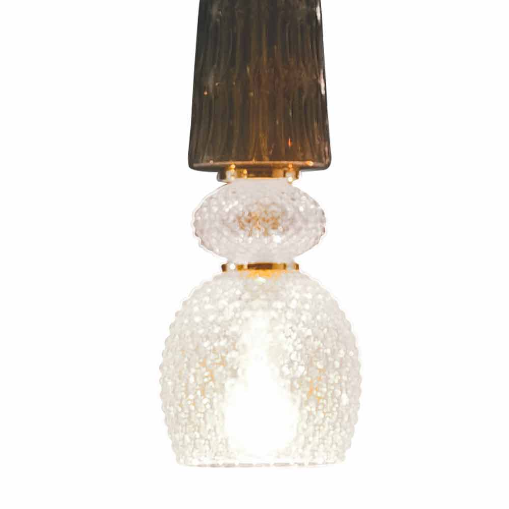 Lámpara de suspensión en cristal de Murano con cable textil, Made in Italy.
