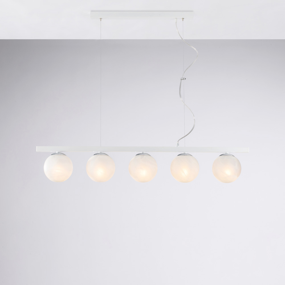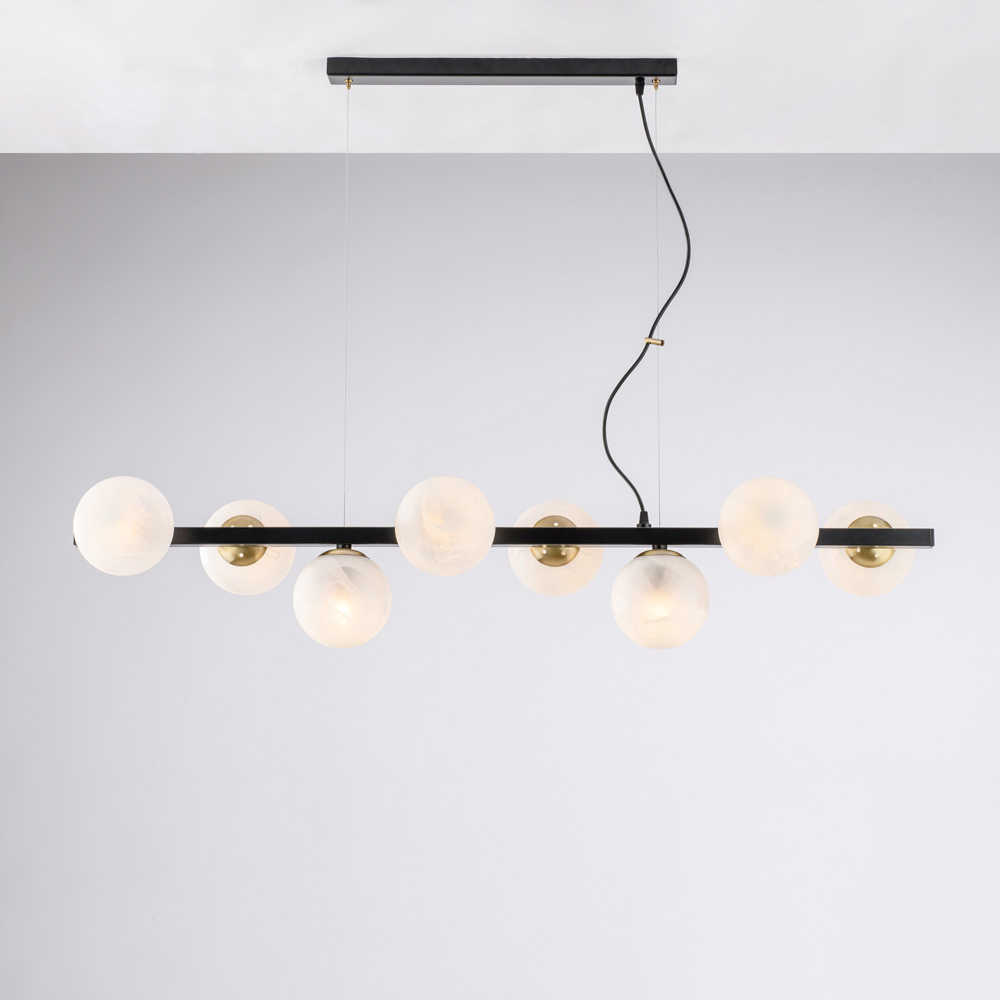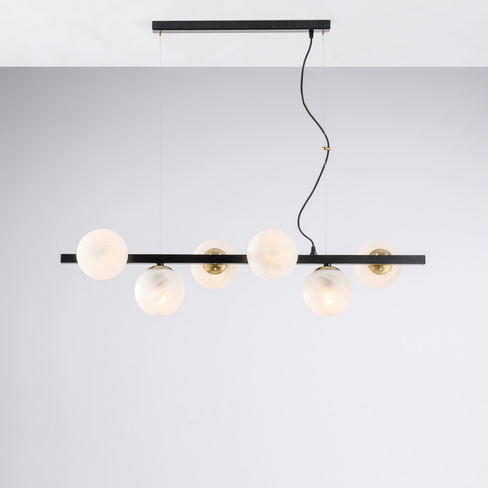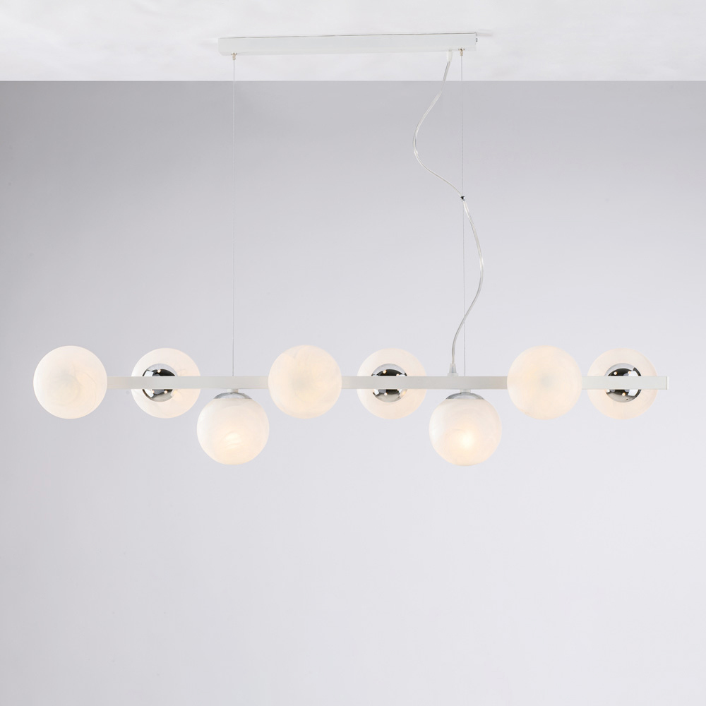 Moderna, elegante y visualmente impactante, esta lámpara colgante de hierro artesanal está diseñada para realzar espacios contemporáneos con una luz difusa y dramática. Su estructura lineal, realzada por esferas luminosas secuenciales , crea un equilibrio perfecto entre rigor geométrico y suavidad visual.
