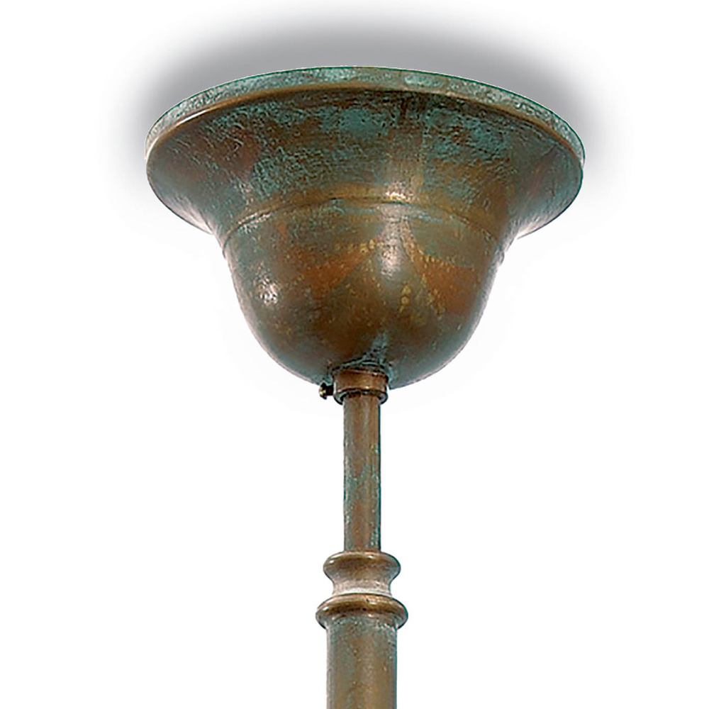 Esta lámpara de exterior expresa un equilibrio perfecto entre tradición artesanal y refinamiento atemporal . La estructura de latón , caracterizada por acabados antiguos , le confiere al conjunto un aspecto cálido y material, ideal para realzar espacios exteriores con un toque clásico , rústico o industrial chic .