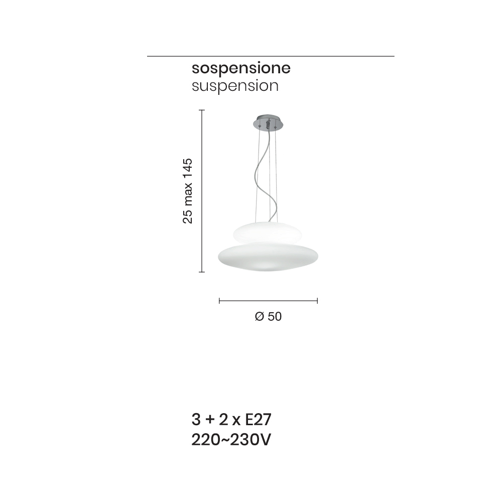diámetro 50 x H 25 cm - H max 145 cm (3 + 2 x E27 220-230V).