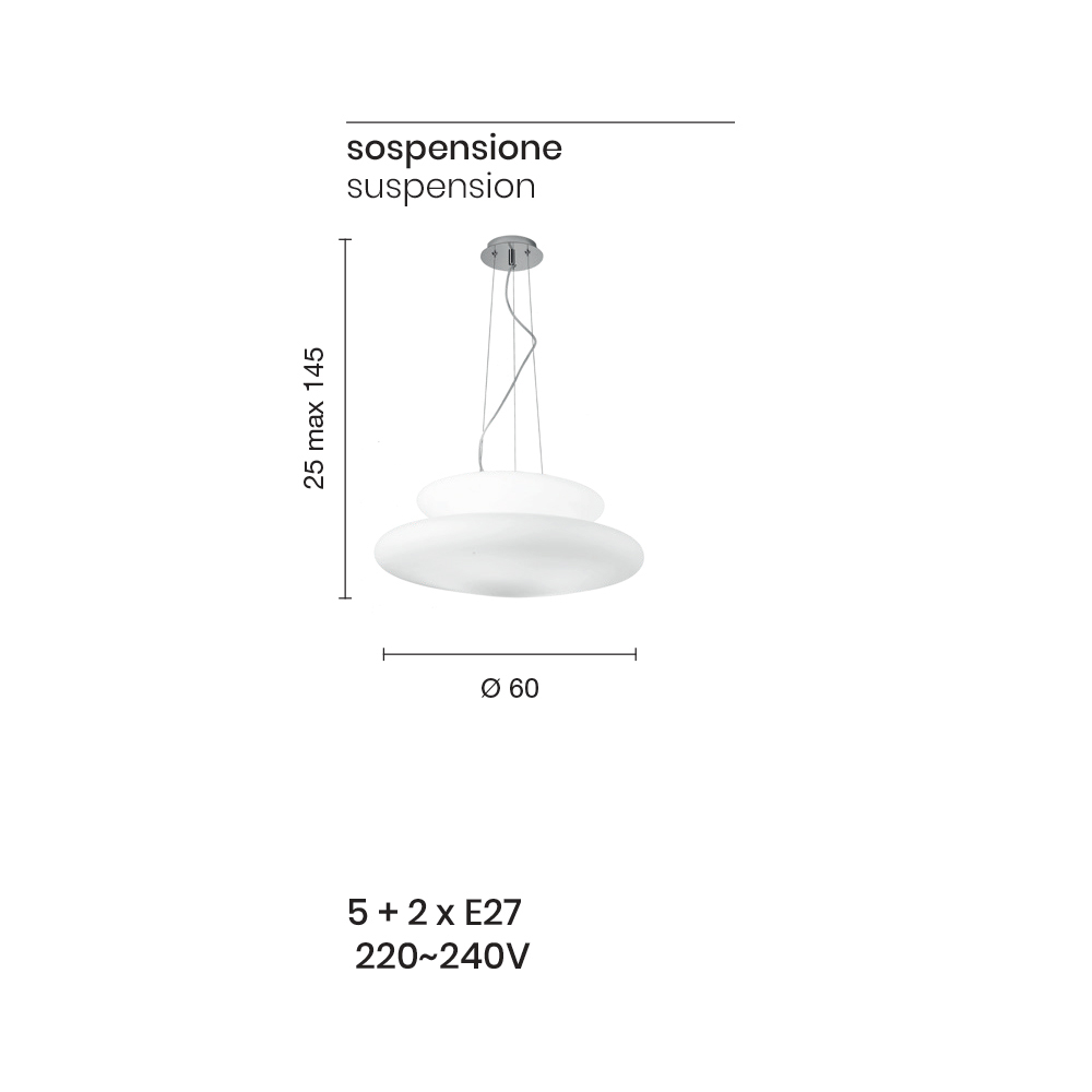 diámetro 60 x H 25 cm - H max 145 cm (5 + 2 x E27 220-230V);