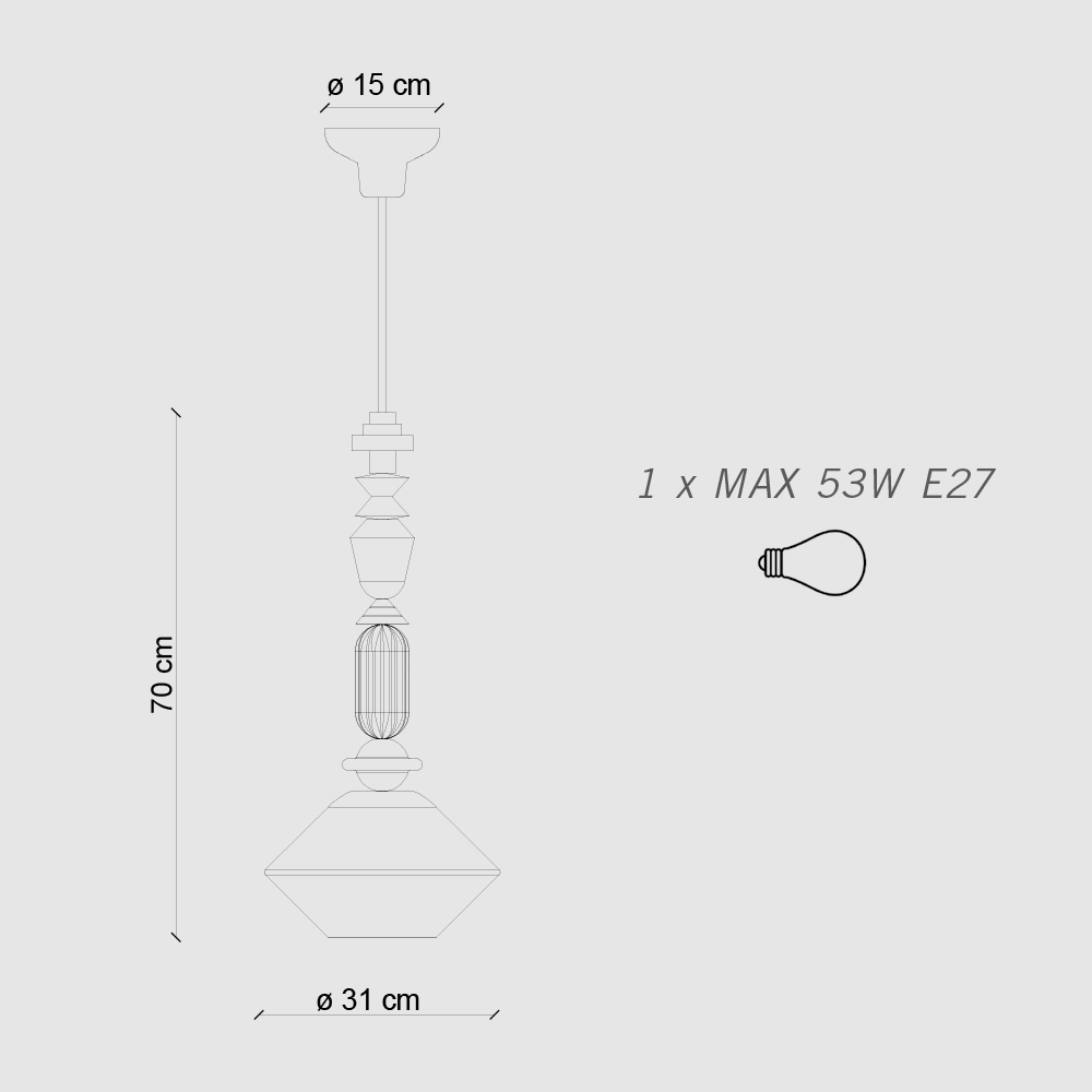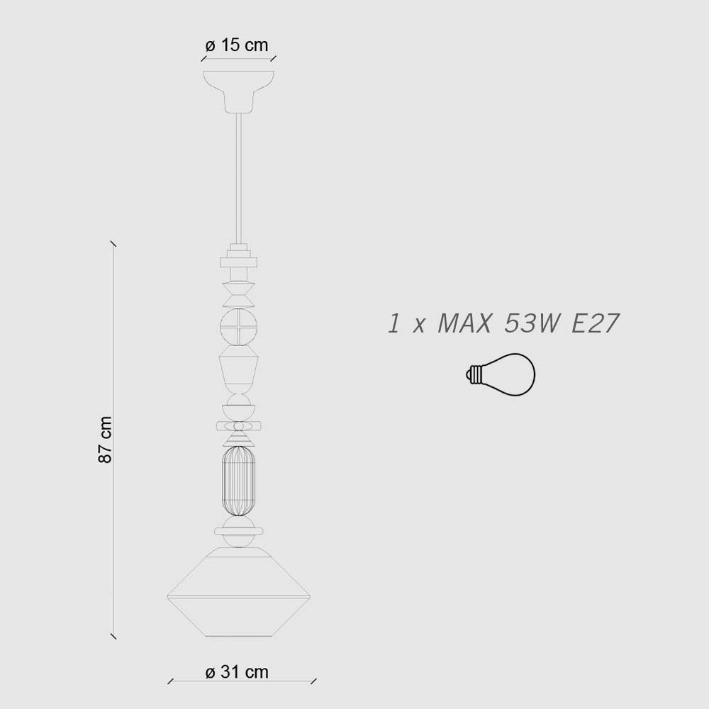 La pantalla de cristal blanco lechoso garantiza una difusión homogénea de la luz, perfecta para crear una atmósfera cálida y acogedora. El diseño vertical es especialmente adecuado para colocarlo encima de las mesas del comedor o para dar la bienvenida a los invitados a una entrada con un estilo atrevido.