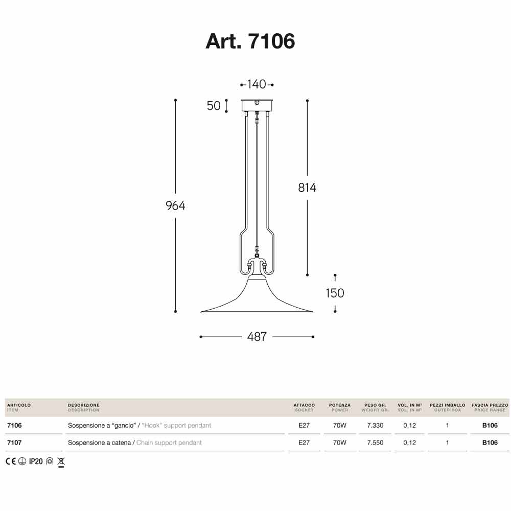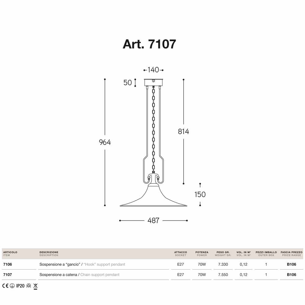 Peso con gancio 7330 gr, con catena 7550 gr