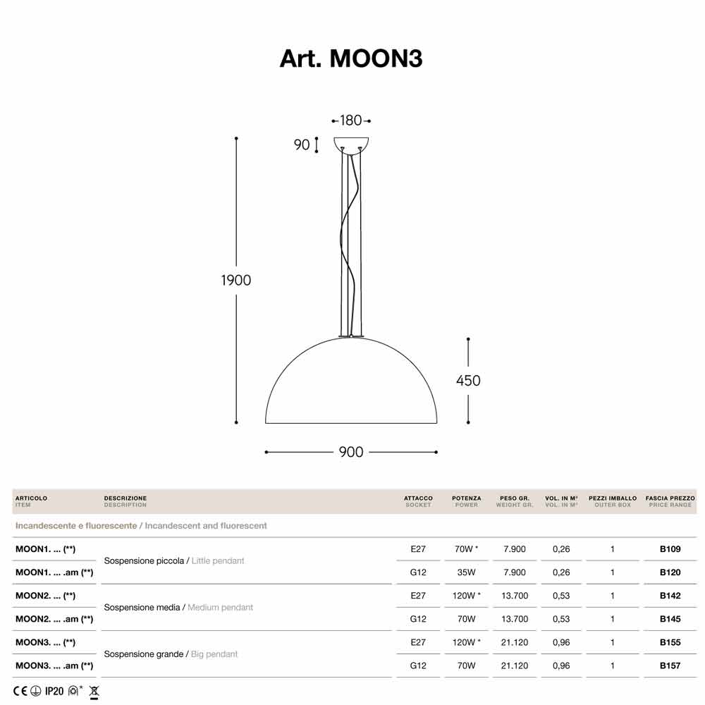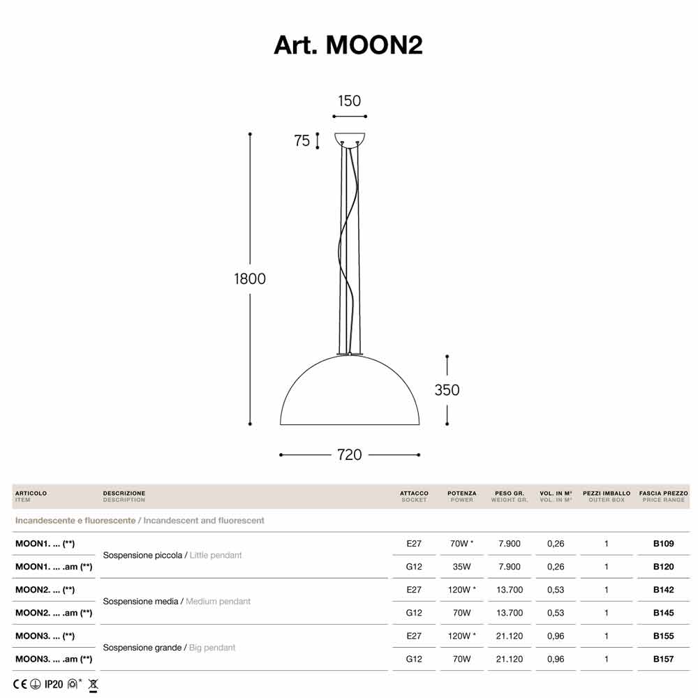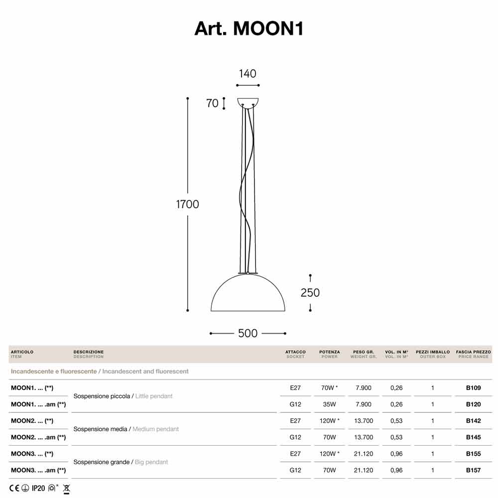 Lámpara de suspensión pequeña de acero modelo Moonlight