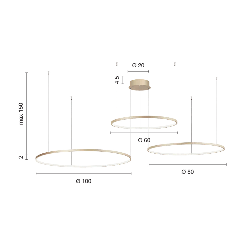 3 luces: diámetro 100 cm / diámetro 80 cm / diámetro 60 cm x altura 2 cm