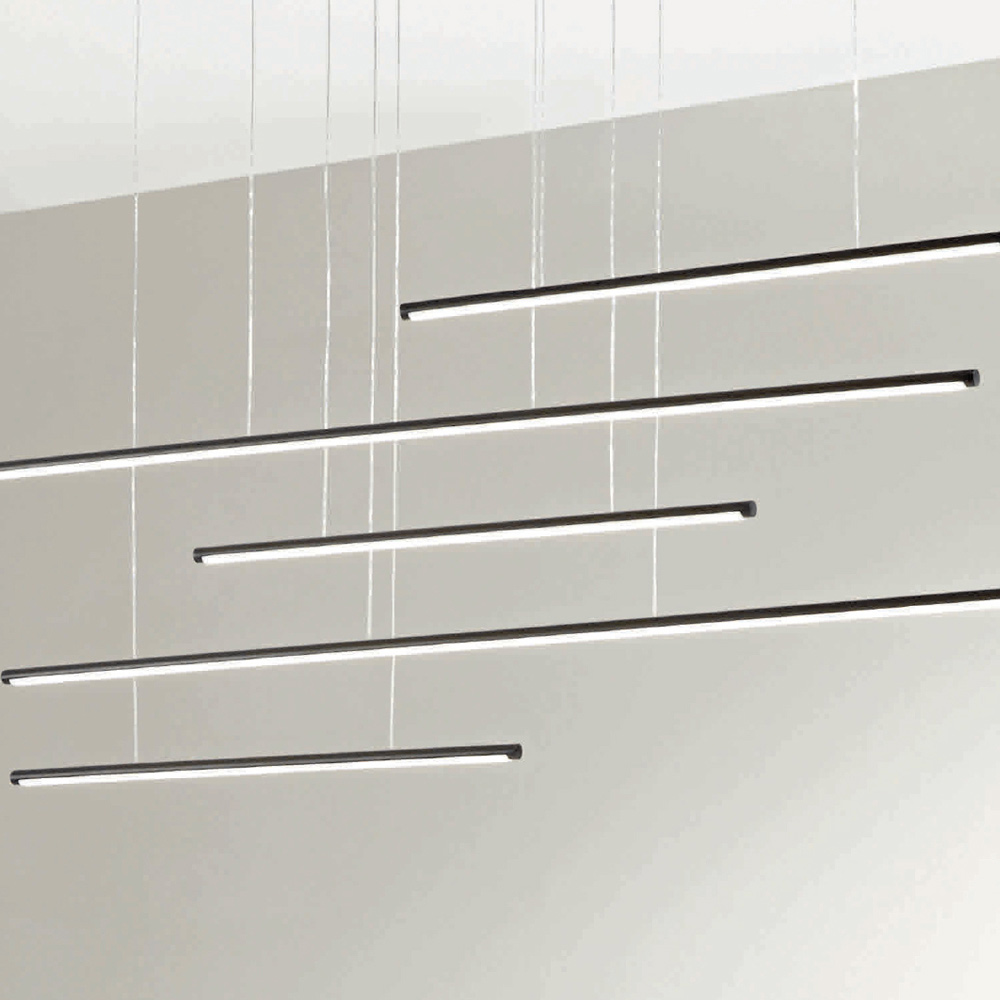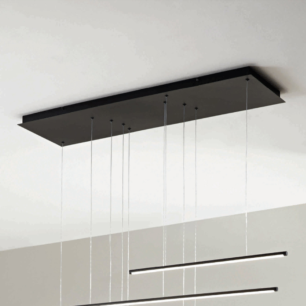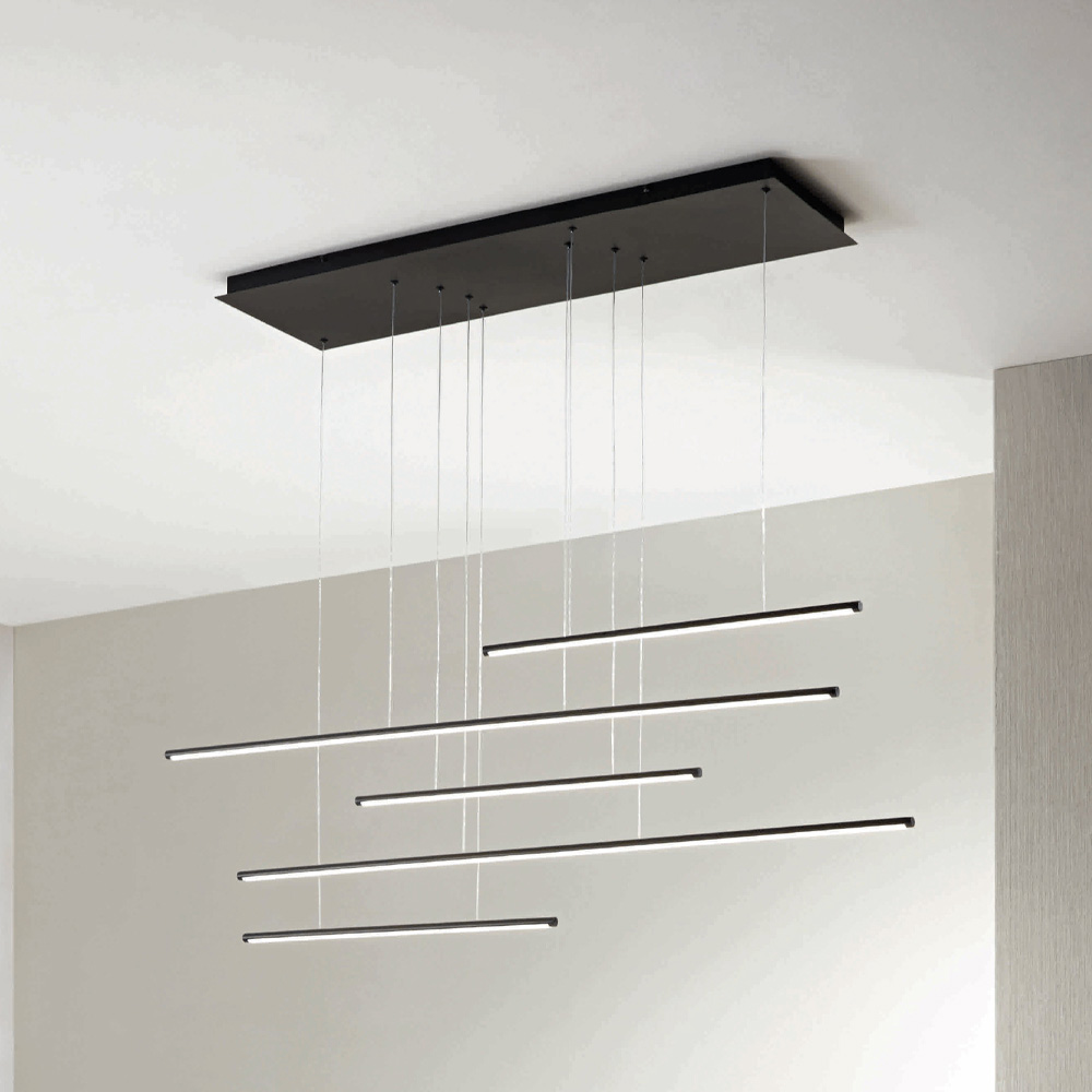 Araña íntegramente fabricada en Italia realizada en metal pintado de negro con luzLED regulable y cables regulables en longitud. Este producto tiene como objetivo realzar la tradición a través de un enfoque contemporáneo donde el estilo, la clase y la innovación se fusionan para crear nuevas fórmulas de diseño para amueblar e iluminar cualquier ambiente con gusto y carácter. Los puntos fuertes son la peculiaridad de las formas , la calidad de los materiales y la singularidad de la fuente de luz .