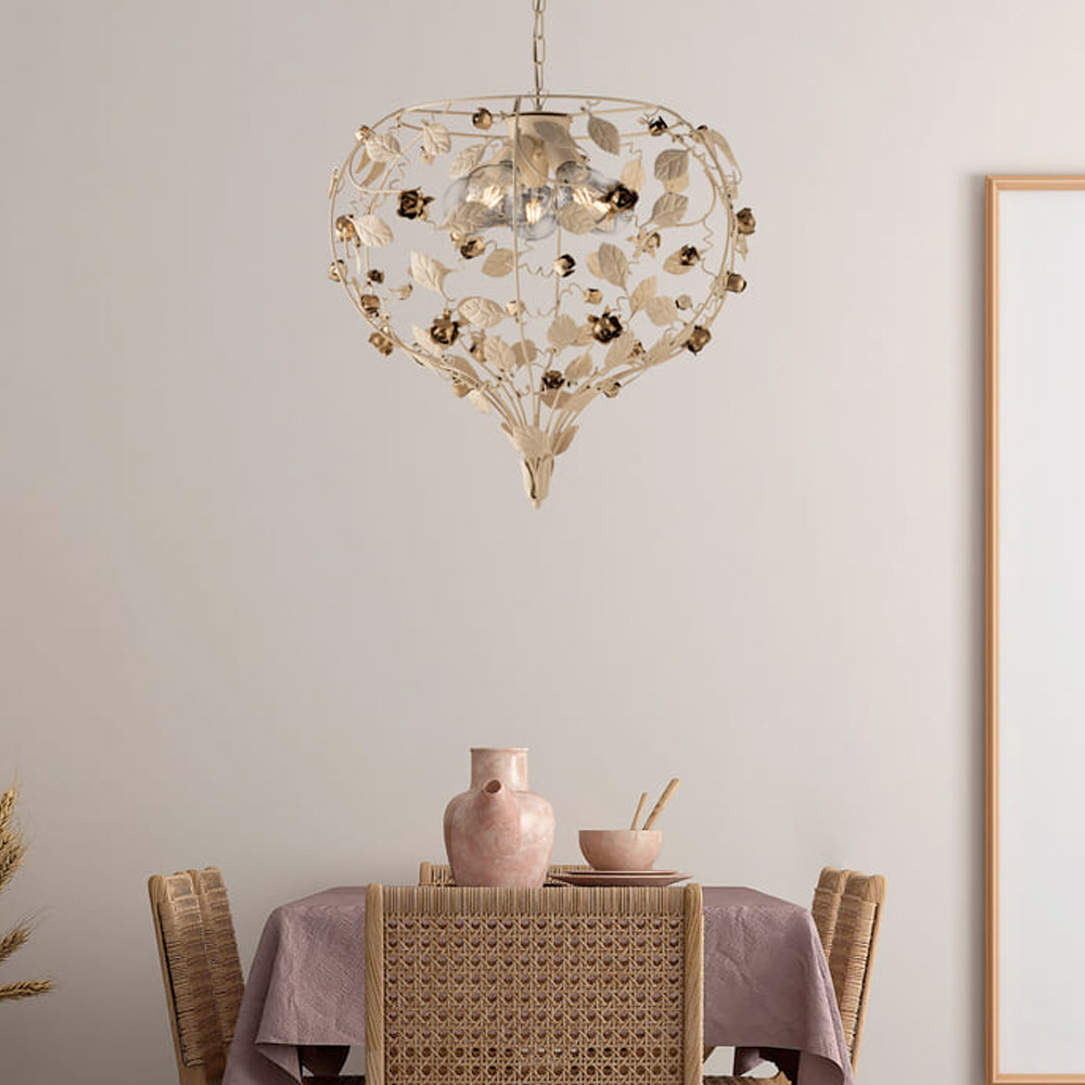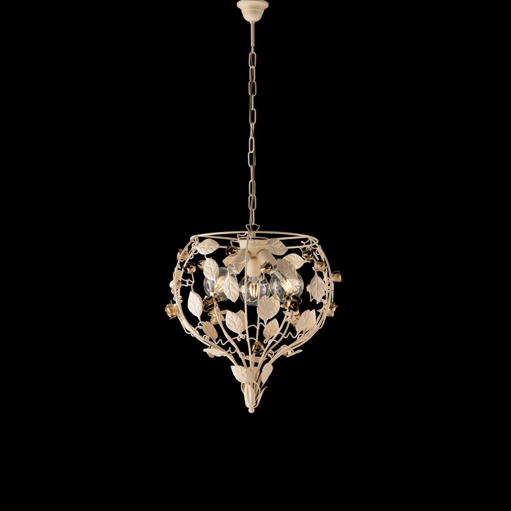 Disponible en el refinado acabado Shabby White , brillante y romántico, o en la cálida y preciosa versión Ivory con detalles en Gold , esta lámpara se integra naturalmente en elegantes salas de estar, comedores, entradas panorámicas y prestigiosos ambientes contract .