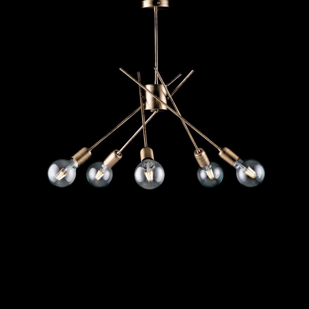 Las bombillas expuestas amplifican la salida de luz y contribuyen a una estética decorativa de vanguardia, ideal para espacios modernos, salas de estar contemporáneas, comedores, lofts y espacios de diseño de prestigio . El acabado en bronce cepillado aporta profundidad y calidez, haciendo que la lámpara sea perfecta tanto como fuente de luz principal como punto focal de la decoración.