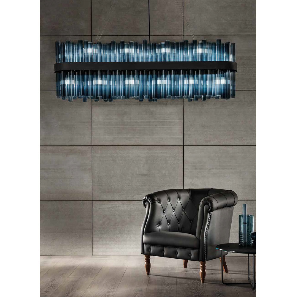 Araña italiana de lujo hecha a mano en vidrio soplado a rayas.