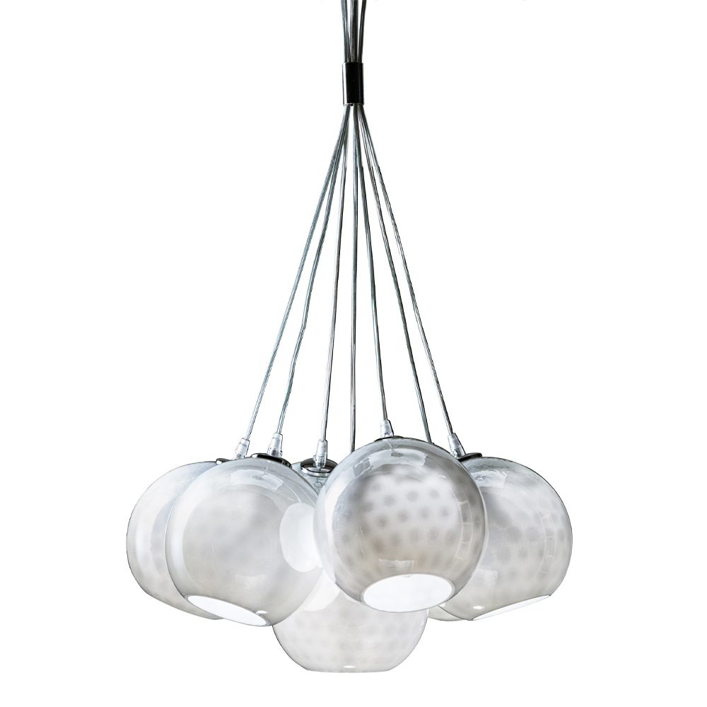 Araña de luces de 7 luces en vidrio soplado a mano en Venecia con técnica Balloton.