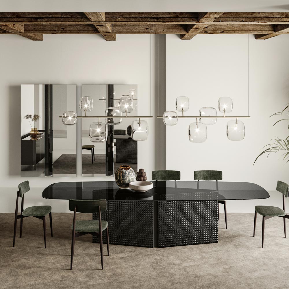 Esta lámpara de araña contemporánea destaca por su diseño único y su capacidad para convertirse en el punto focal de cualquier espacio moderno. Compuesta por esferas de vidrio transparente suspendidas a diferentes alturas, la lámpara ofrece una difusión de la luz tan funcional como artística .