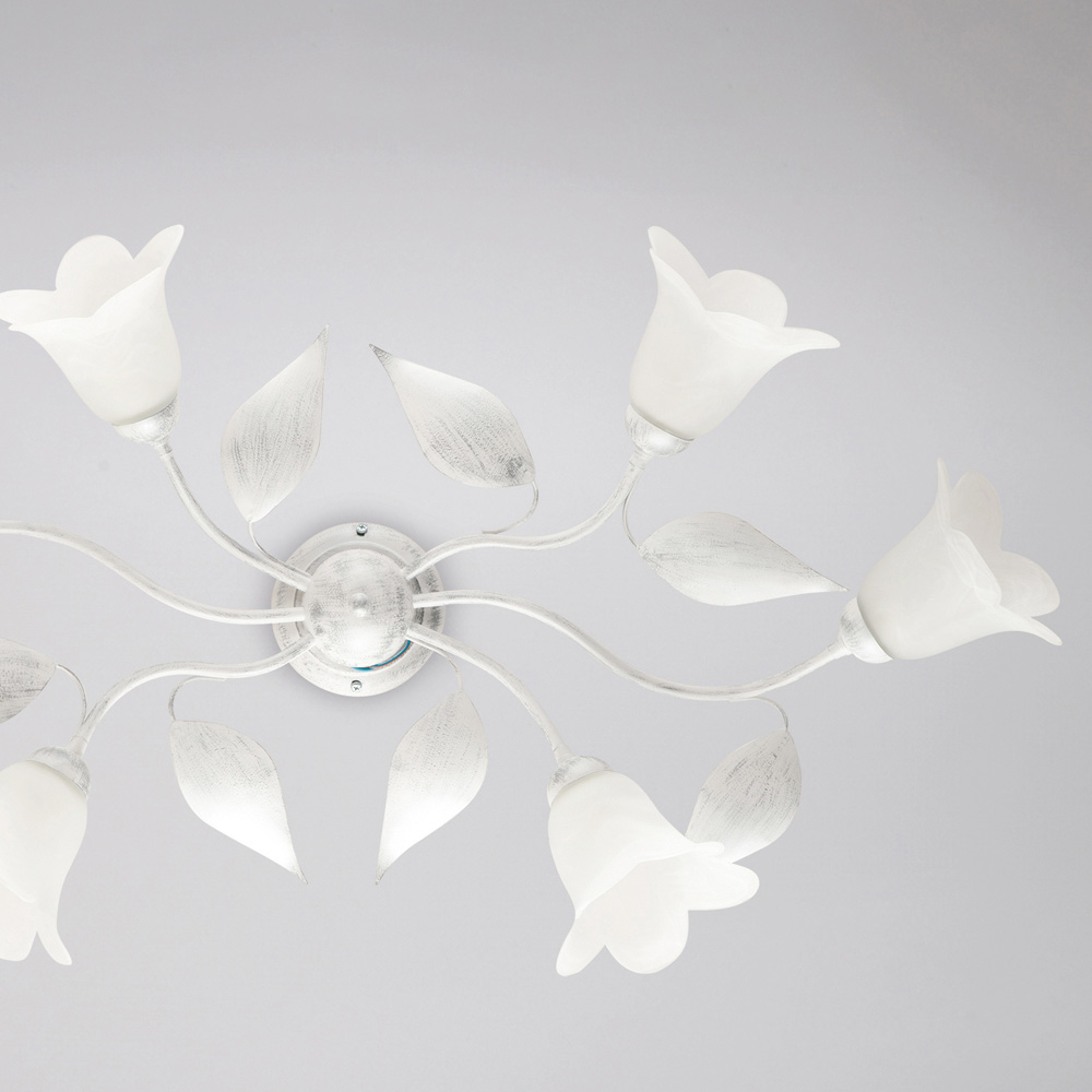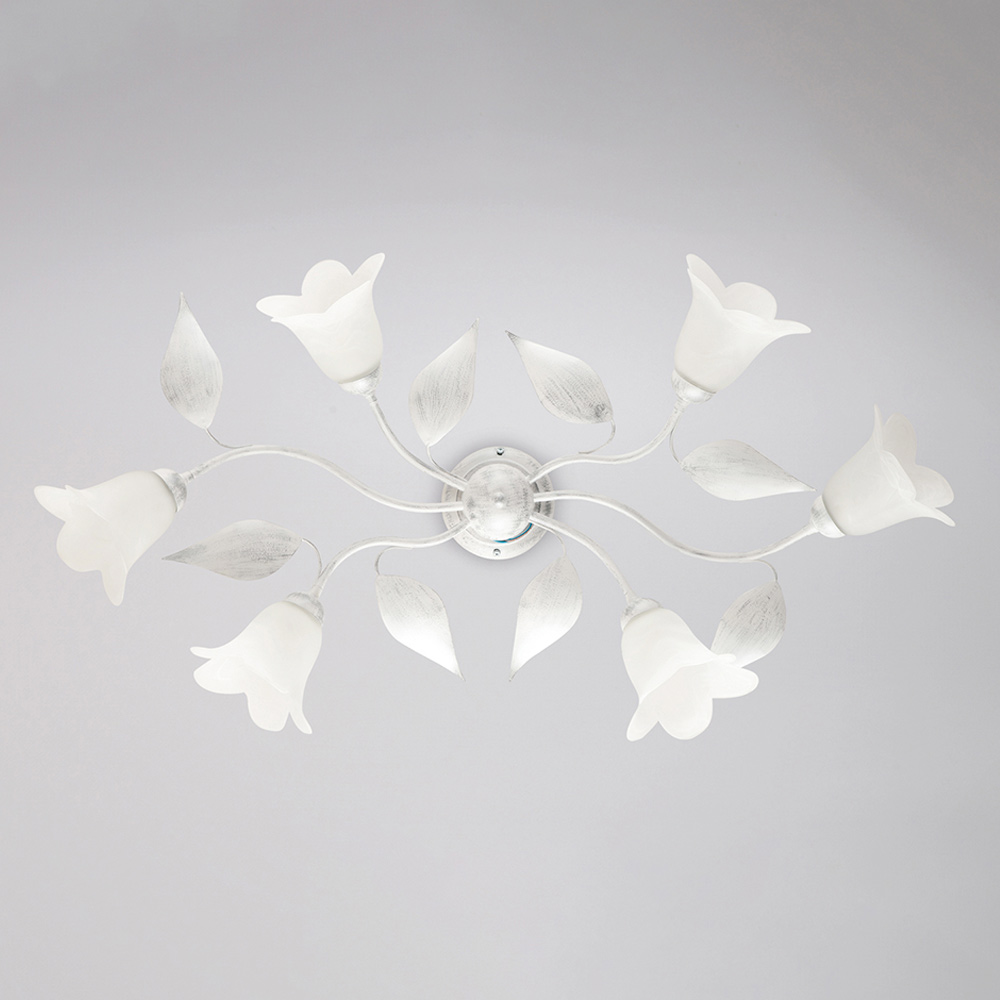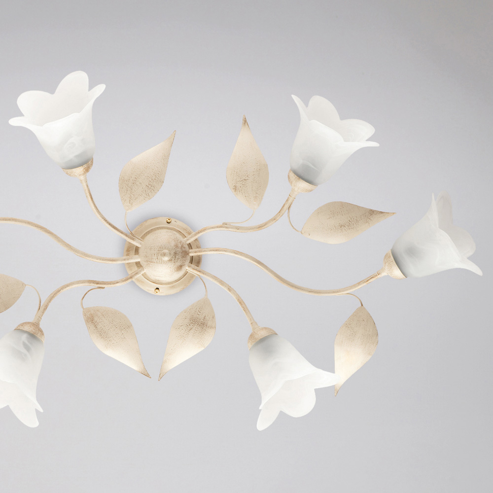 Los materiales cuidadosamente seleccionados (hierro y vidrio) aportan un efecto elegante y una agradable iluminación. Fabricada íntegramente en Italia, esta lámpara de techo es el resultado de una meticulosa artesanía que realza tanto la estética como la funcionalidad.