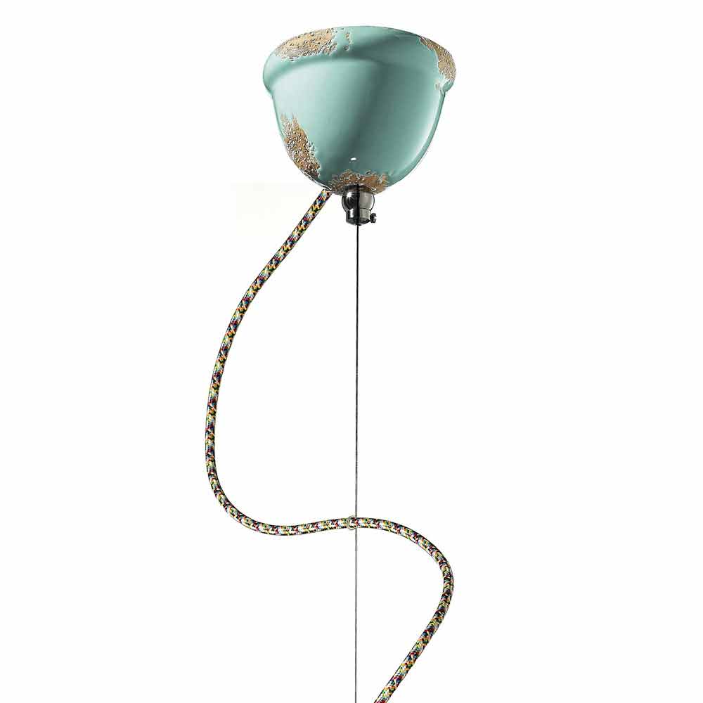 Lámpara colgante estilo retro de Ferroluce Formas y dimensiones lineales diseñadas para dar carácter a los muebles más minimalistas, pero capaces de integrarse incluso con los muebles más refinados, capaces de evocar la estética industrial del siglo XX. Las superficies describen un estudio preciso del color y los colores. Las geometrías se pueden reinterpretar a través de superficies recubiertas de suaves esmaltes con efecto arenado y elegantes tonalidades, mediante el uso de esmaltes capaces de dar a la superficie un aspecto vivido táctil y visual, y a los colores retro, o mediante el uso de flores estilizadas en perfecto estilo Shabby. que se esparcen sobre las superficies recreando un fascinante efecto fresco, este acabado adamascado se obtiene a través de detalles cromáticos y pequeños detalles técnicos en la decoración, realzando así incluso las superficies planas. Ideal para ambientes con estilo urbano y sabor vintage. Diseño esencial, crudo, diseñado para difundir una luz plena y tranquilizadora. Pequeños detalles para un gran efecto con sabor antiguo.