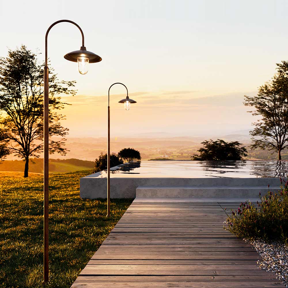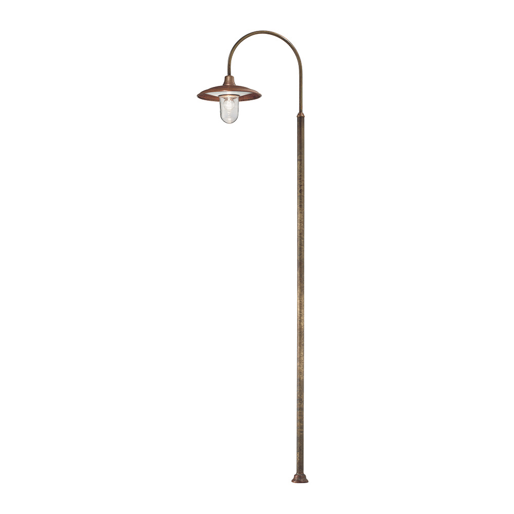 Farola de exterior fabricada con estructura de latón envejecido, cabezal de cobre envejecido y cristal transparente.íntegramente Made in Italy. En las lámparas de la colección Chiocciola, fabricadas en hierro, latón o cobre antiguo, se hace hincapié en la funcionalidad. Inspiradas en el arte pobre, tienen formas limpias y libres de cualquier artificialidad. La colección se compone de lámparas colgantes, apliques, plafones y lámparas de jardín.