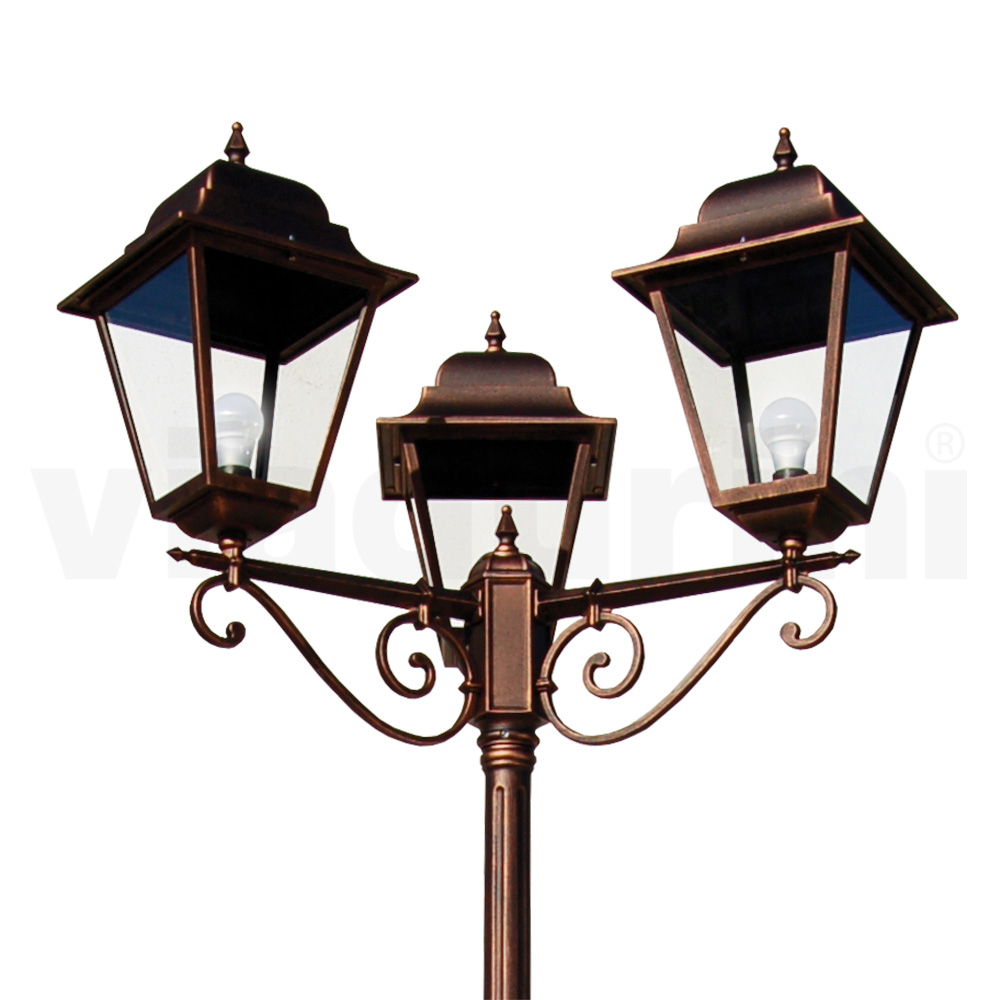Incorpore un toque de gracia clásica a su espacio exterior con esta farola. Fabricado en robusto aluminio fundido a presión , destaca por su excepcional durabilidad y su capacidad para resistir los elementos con elegancia. El acabado realza cualquier jardín o camino de entrada, difundiendo una calidez visual tan acogedora como encantadora. Las 3 cúpulas superiores y el cristal se unen para crear una distribución óptima de la luz, mientras que los detalles artesanales aportan a la pieza un carácter distintivo y un encanto antiguo. Ya sea colocada a lo largo de un romántico sendero en el jardín o como punto de bienvenida en la entrada, esta farola no es simplemente un elemento funcional sino un verdadero símbolo de estilo y calidad.
