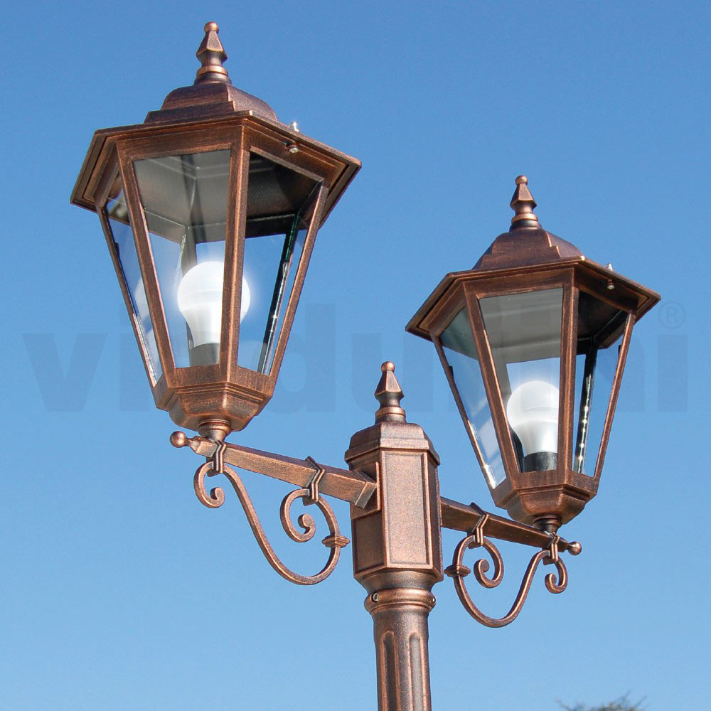 Esta elegante lámpara de exterior de aluminio fundido combina sofisticación y durabilidad en un diseño que captura la esencia del gusto clásico. El acabado versátil y atemporal hace de esta farola un complemento ideal para cualquier tipo de ambiente, desde el más tradicional al moderno. Las esbeltas líneas de la estructura se elevan con gracia, culminando en 2 faroles que difunden una luz cálida y acogedora, ideal para crear una atmósfera evocadora en cualquier espacio exterior. Con su apariencia elegante y construcción duradera, esta farola es la elección perfecta para quienes desean embellecer e iluminar con elegancia jardines, parques o entradas de vehículos.