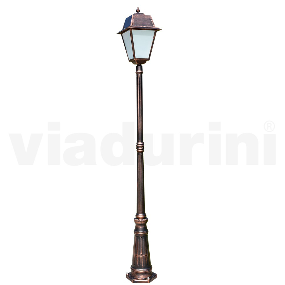 Farola vintage de aluminio con difusor de cristal arenado Made in Italy.
