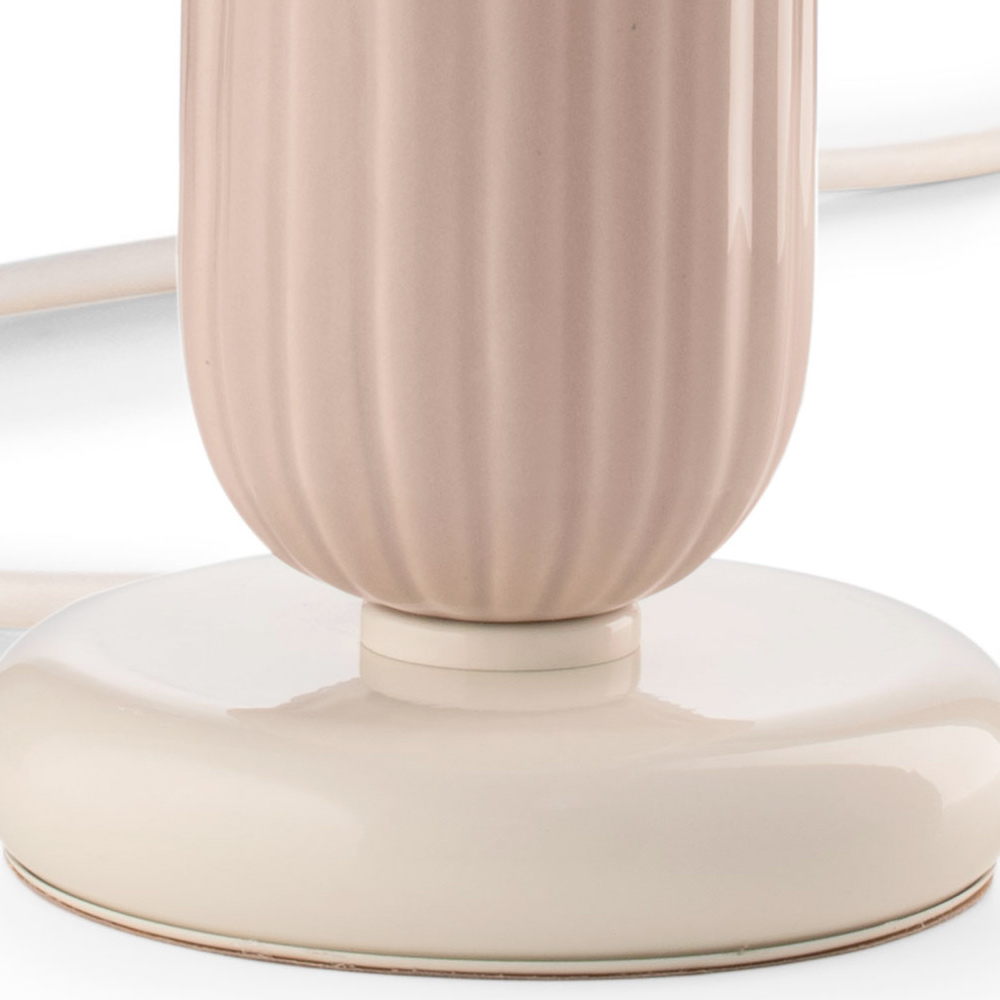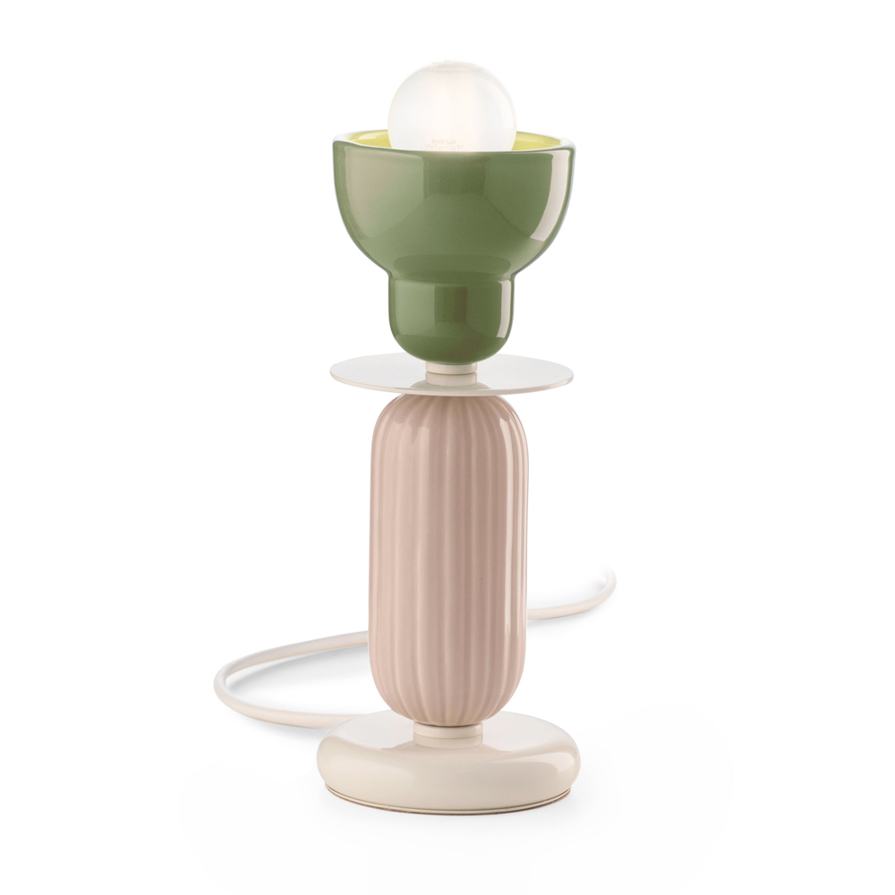 Lámpara de mesa realizada en cerámica coloreada , base y cable de hierro pintado de blanco. con cableado PCV blanco íntegramente Made in Italy.