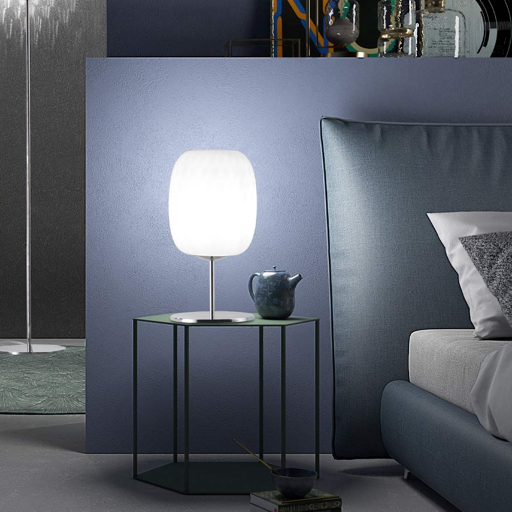 Lámpara de sobremesa en vidrio Venecia soplado a mano trabajado con la técnica Balloton.