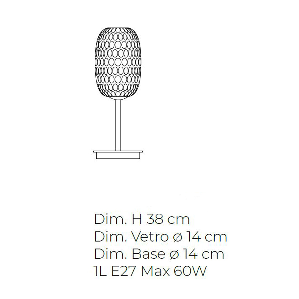 - diámetro 14 x H 38 cm (1x E27 Max 60W).