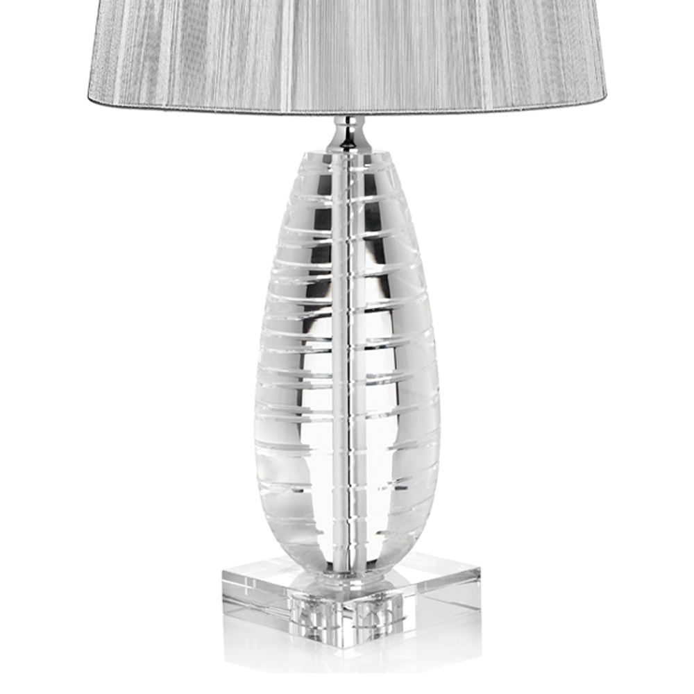 Lámpara de mesa de cristal clásica con pantalla cilíndrica de lujo.