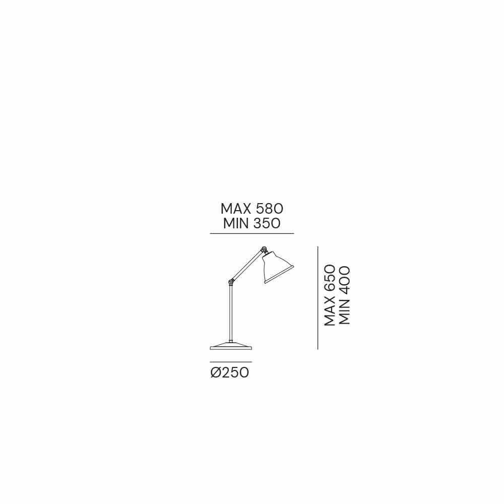 Esta lámpara de mesa de interior está fabricada íntegramente en Italia y en hierro y latón . El diseño limpio se caracteriza por una materialidad fuerte y elementos estéticos refinados. La peculiaridad viene dada por el sistema de articulación que permite y facilita el movimiento de arriba hacia abajo y de izquierda a derecha. Ideal para los amantes del estilo industrial vintage , es capaz de crear un look vanguardista y minimalista.