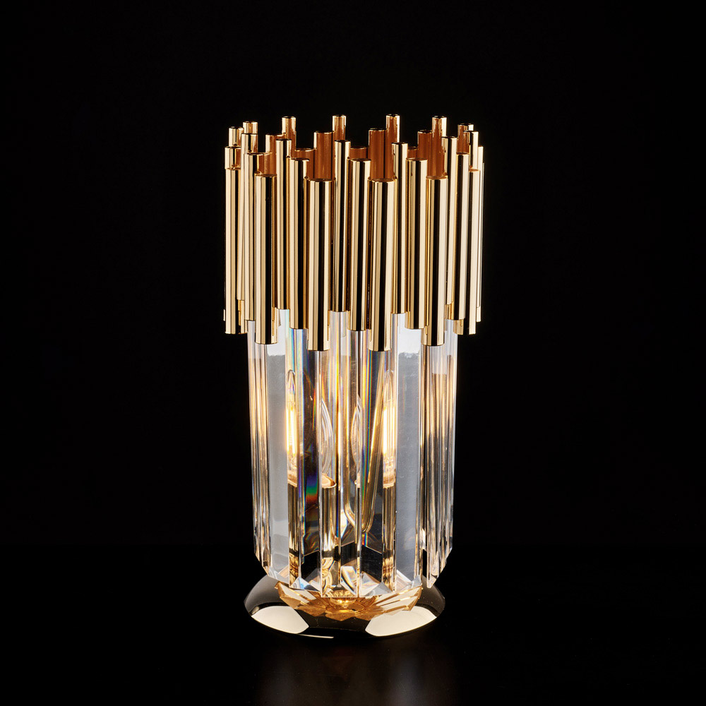 El acabado dorado pulido realza el carácter sofisticado de la lámpara de mesa, haciéndola ideal para elegantes mesitas de noche , consolas , salones refinados y ambientes de lujo . Un objeto luminoso que expresa la calidad de la artesanía italiana , donde la atención al detalle y los materiales nobles se funden en un diseño exclusivo.