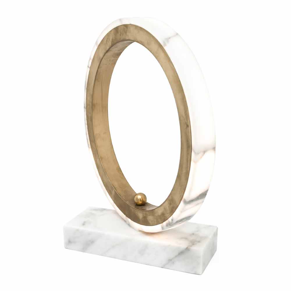 Lámpara de soporte de diseño en mármol blanco de Carrara y latón, de alta calidad made in Italy.
