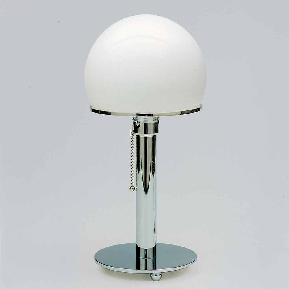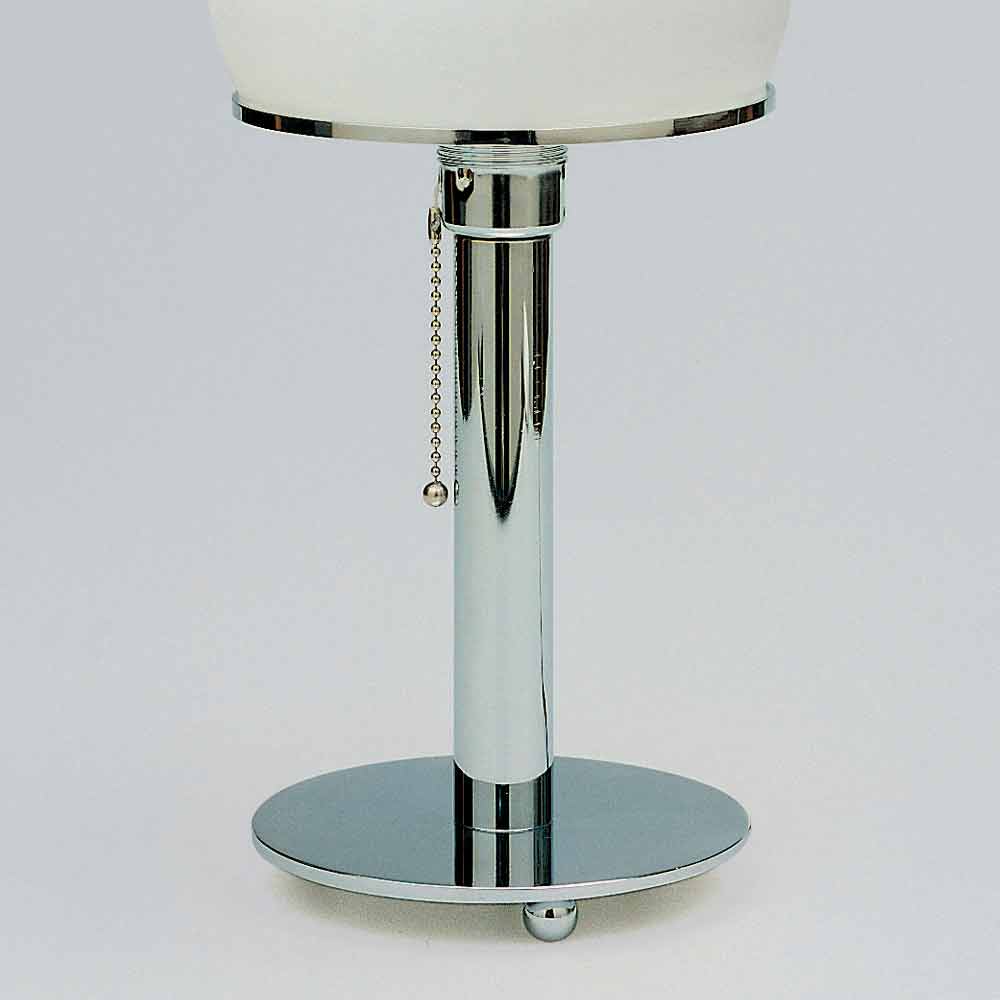 Lámpara de mesa con estructura de acero cromado fabricada en Italia.