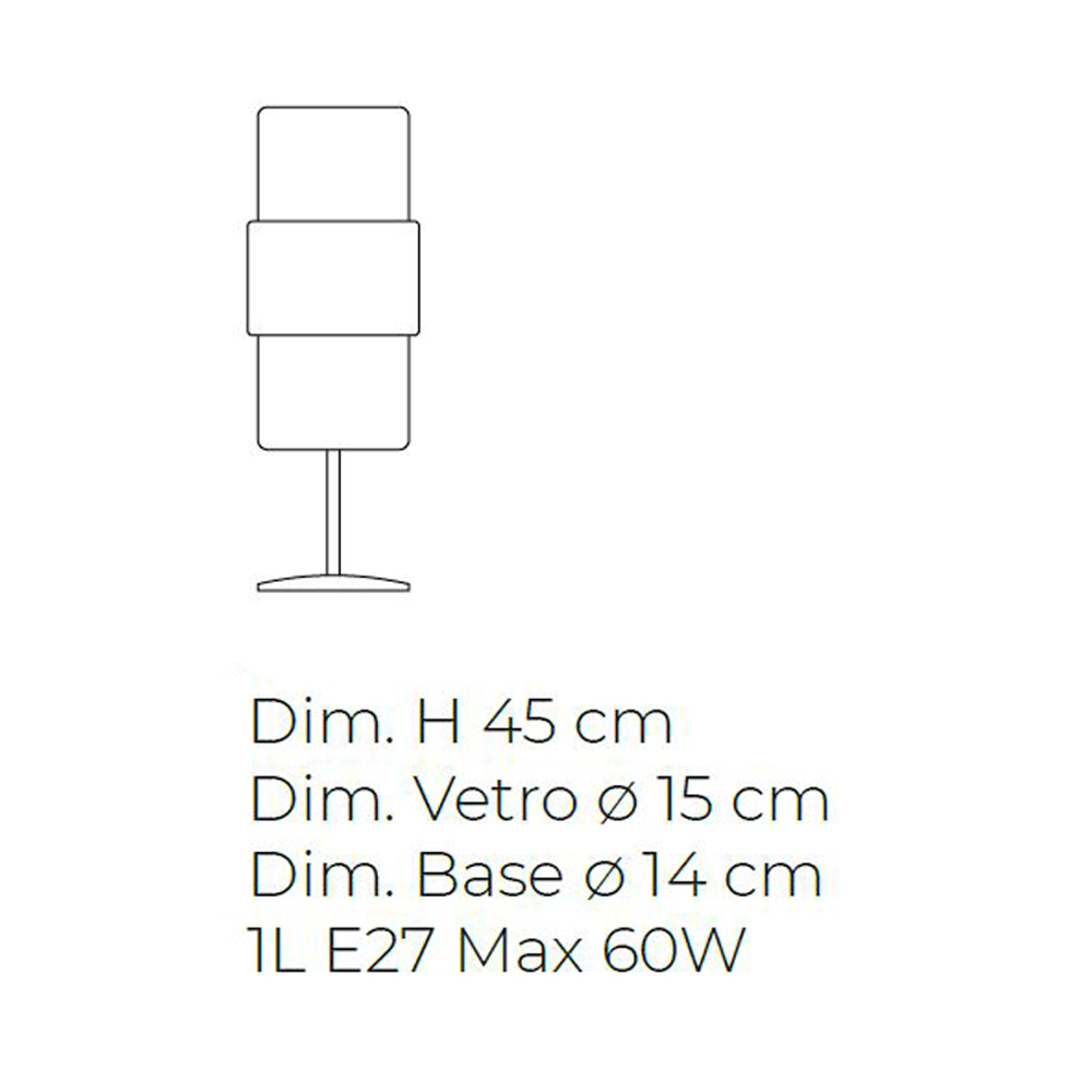 Lámpara de mesa hecha a mano en vidrio soplado en el interior de los hornos del interior veneciano, en Italia, gracias a la transmisión de técnicas ancestrales utilizadas a lo largo de los años por los maestros del vidrio italianos para el procesamiento del vidrio de Murano.