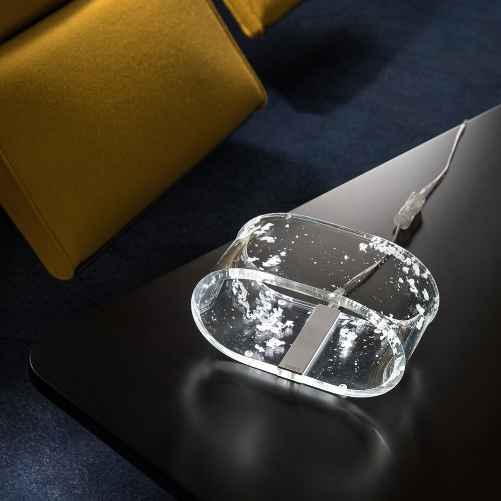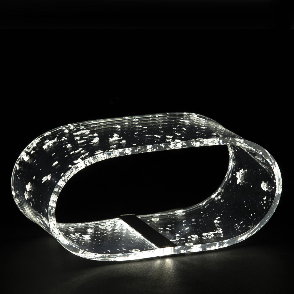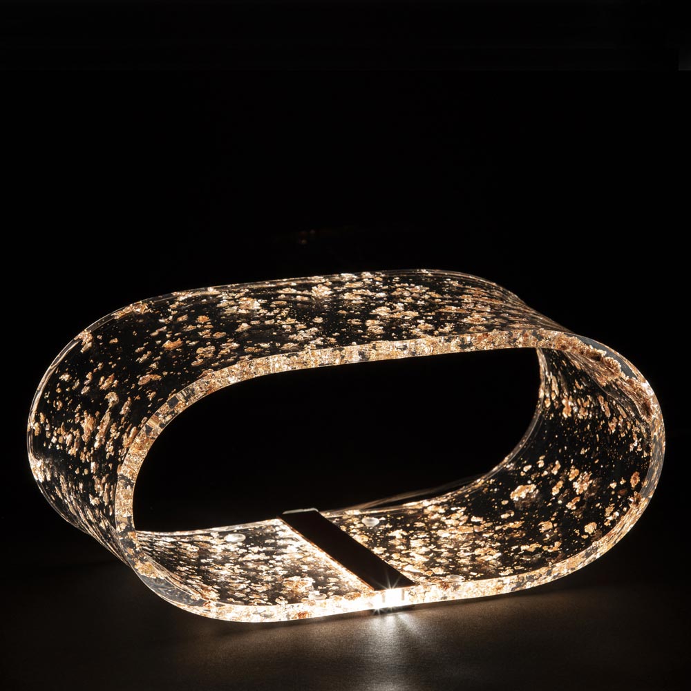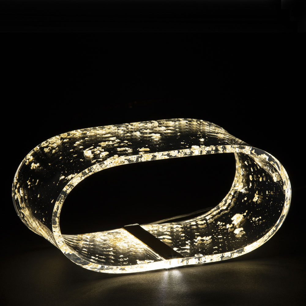 Lámpara de sobremesa en cristal acrílico y pan de oro, plata o cobre, 2 medidas made in Italy.