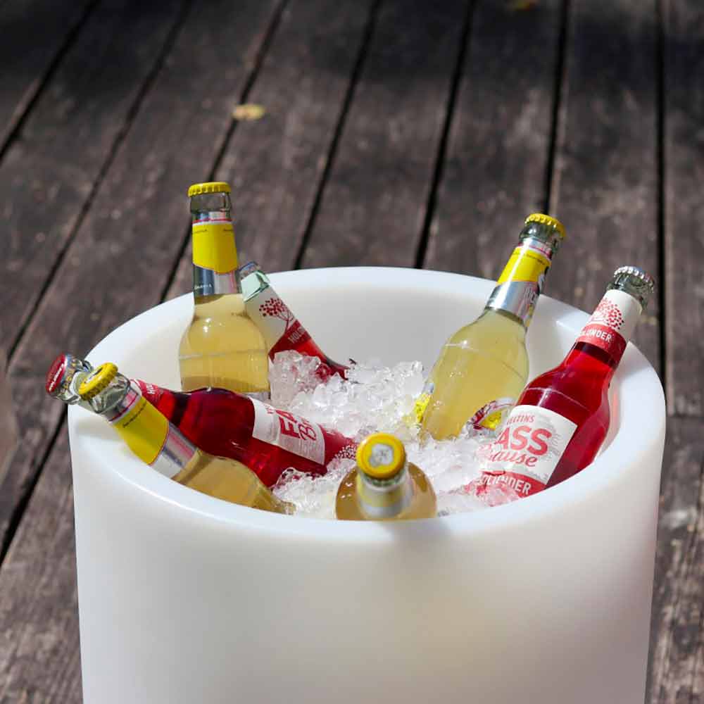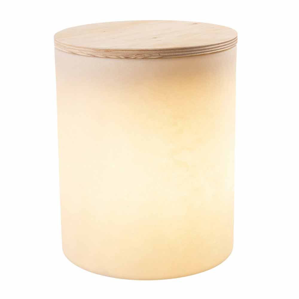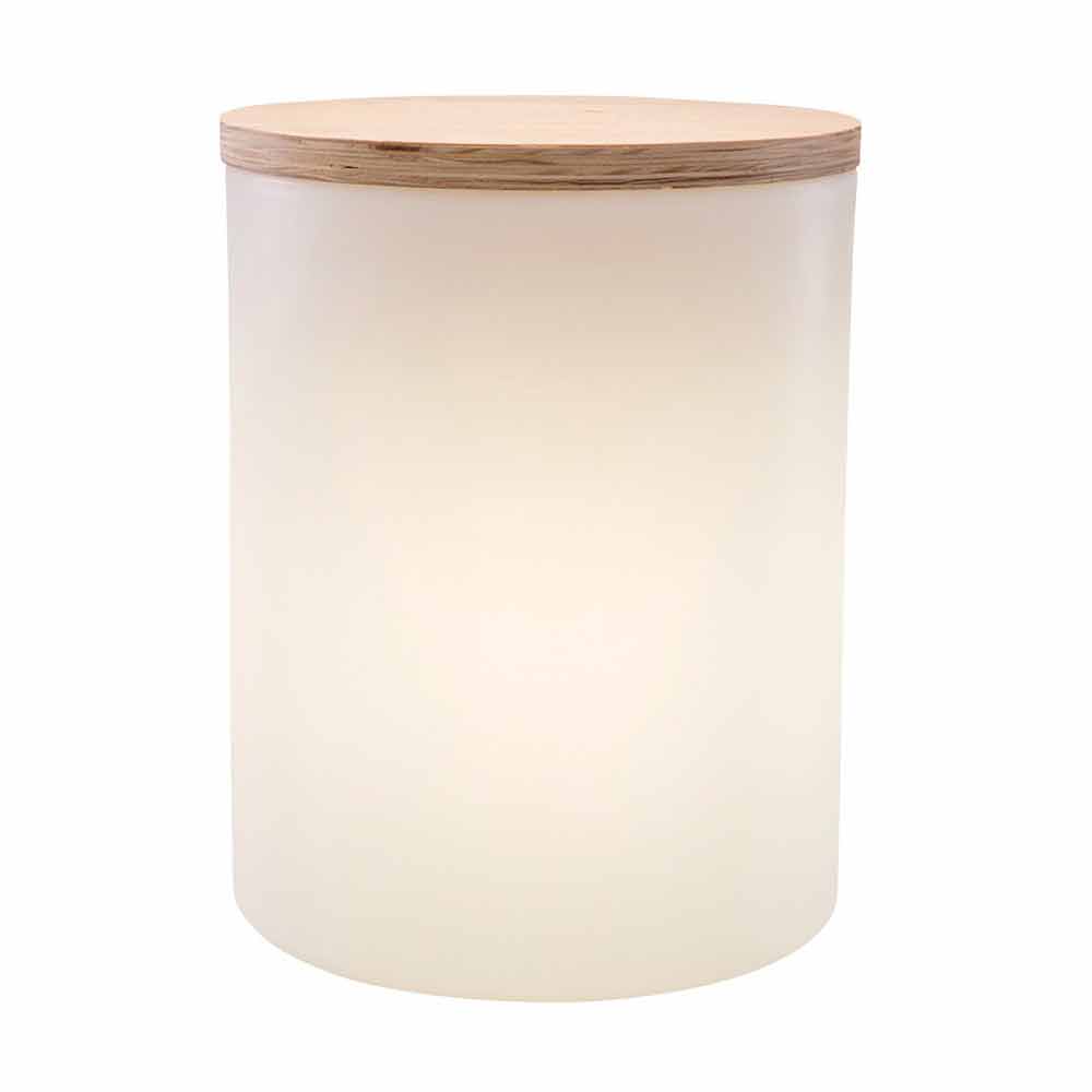 La forma cilíndrica con la tapa de madera la hace adecuada para su uso como asiento, mientras que el sistema de drenaje inteligente también la hace adecuada como maceta luminosa para plantas.