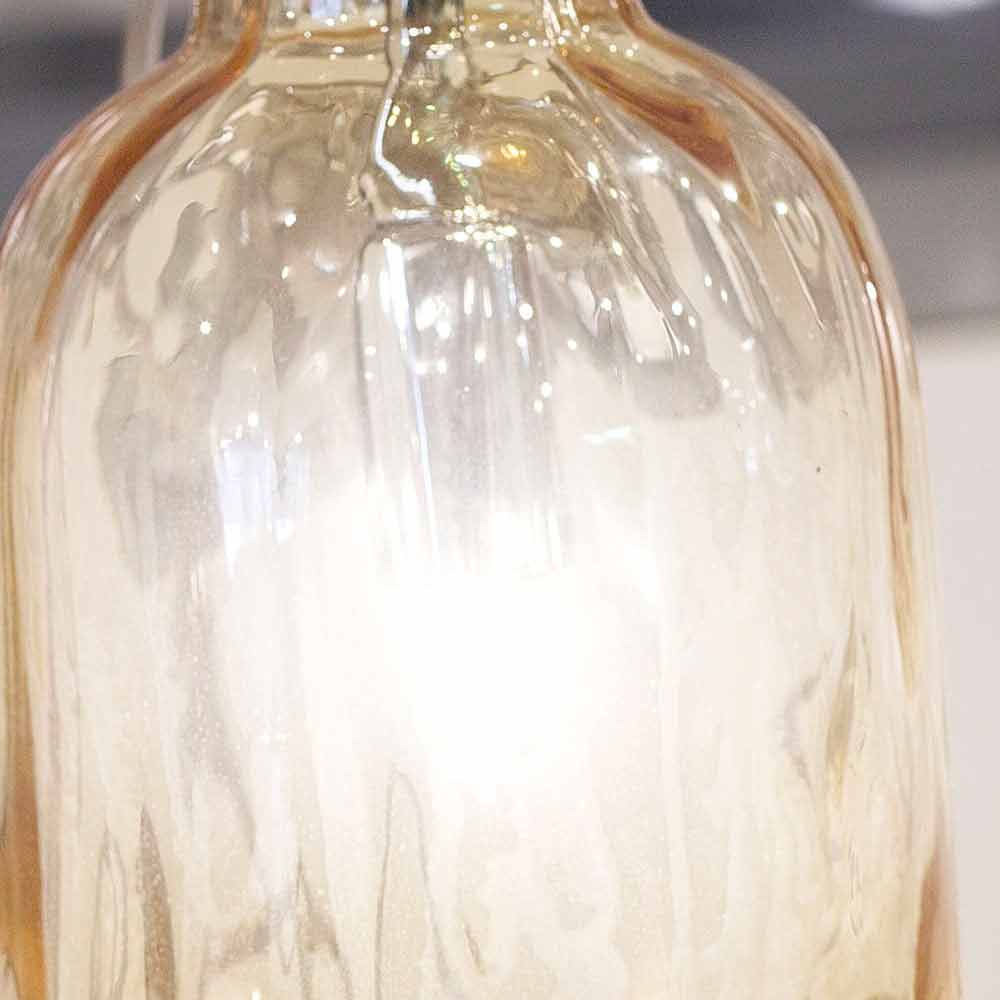 lámpara de mesa Selene Bossa Nova Ø10 H 26cm en ámbar vidrio soplado, hecho a mano en Italia Bossa Nova es una colección brillante, cuyo elemento que caracteriza tres botellas de vidrio soplado de varios colores y tamaños que producen una hermosa luz y efectos de color interesantes que se adaptan bien a diferentes entornos en los que se pueden insertar. Dispositivo eléctrico con E27 o ataque LED integrado.