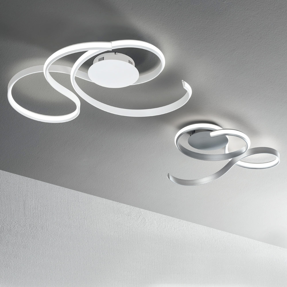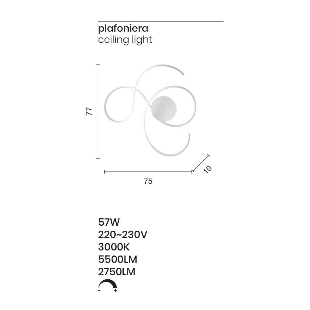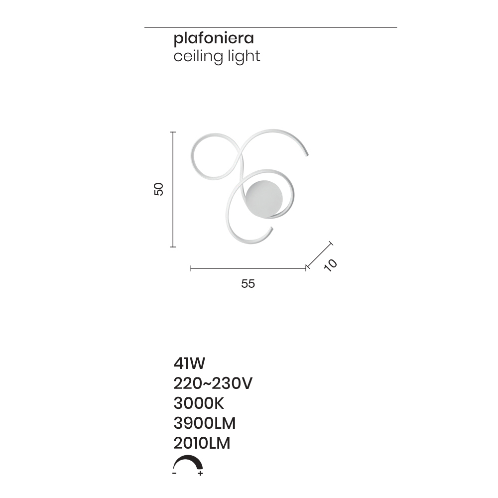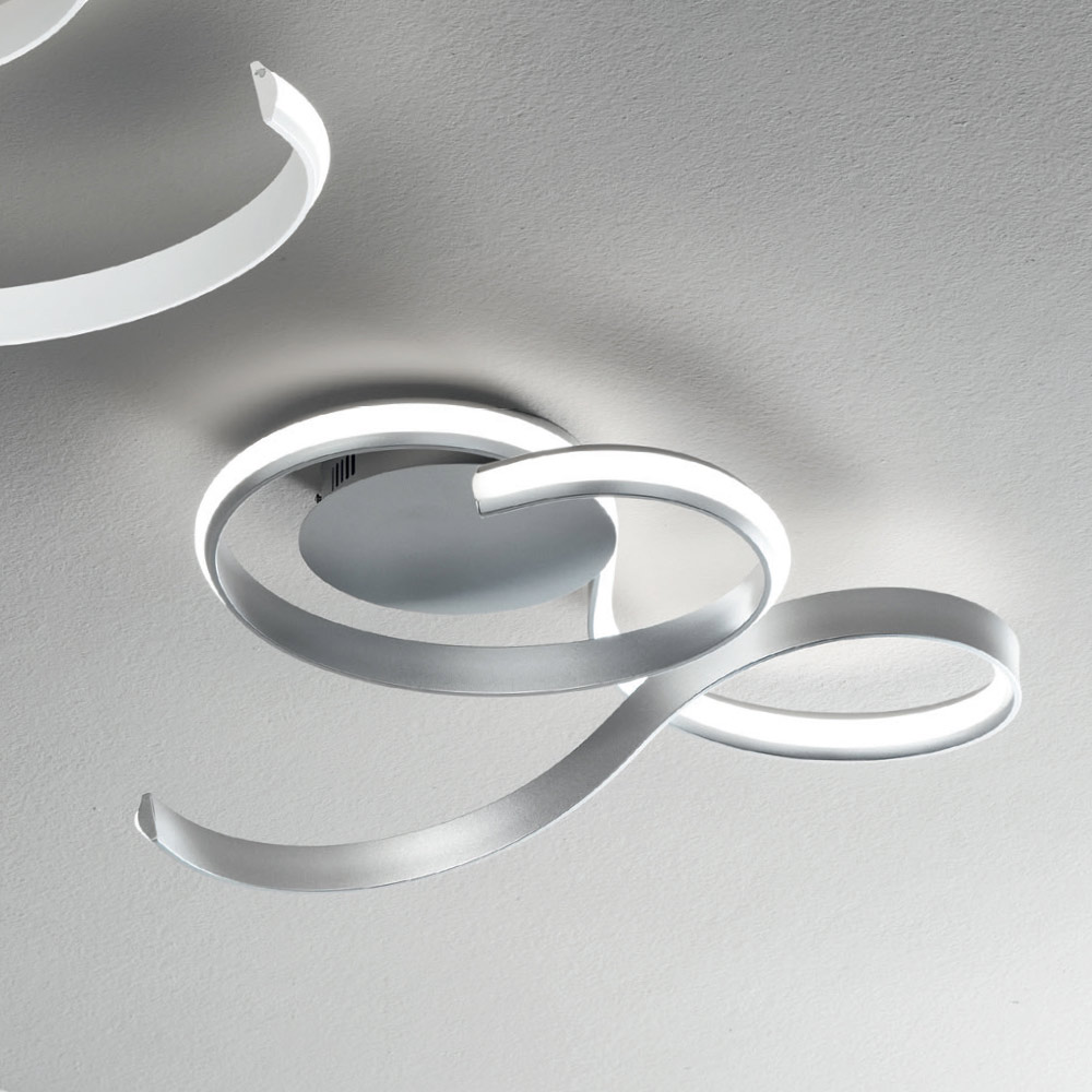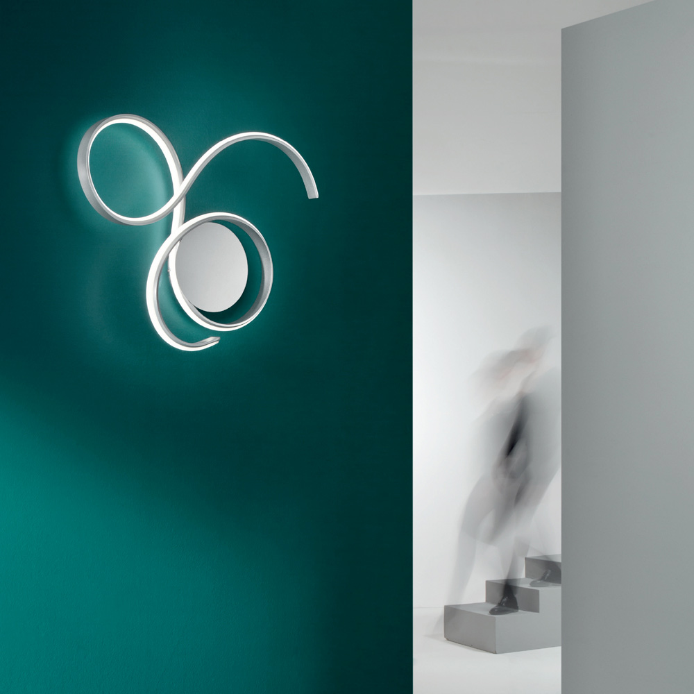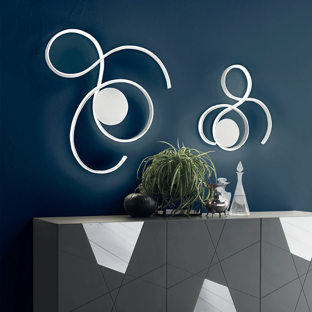 Aplique de pared en metal pintadocon fuente de LED regulable integrada. Líneas sinuosas y formas originales dan vida a este mueble moderno que encanta la vista e ilumina cualquier espacio doméstico con un toque de creatividad y elegancia . Un diseño único e inconfundible capaz de llenar las paredes de la casa mediante el uso de curvas armónicas y exclusivos juegos de luces para una iluminación de calidad, especialmente cálida y acogedora . Ideal para dar luz a entradas, áreas de estar, dormitorios o cocinas, esta lámpara muestra una fuerte personalidad contemporánea y, gracias al controlador de potencia regulable ubicado dentro de la placa central, le permite ajustar el flujo luminoso para un resultado altamente personalizable . Su conformación también permite su instalación en el techo como un plafón clásico, lo que la hace aún más ecléctica y versátil .