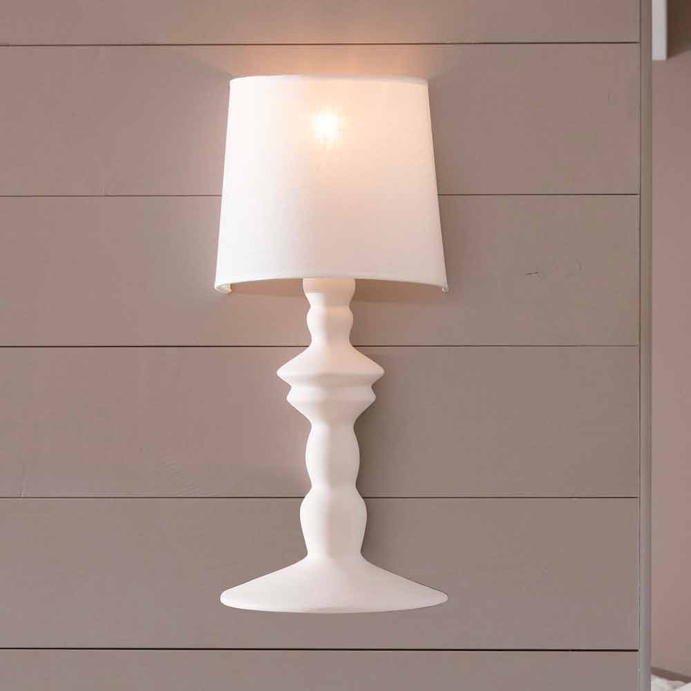 La lámpara está fabricada en cerámica pintable como material que representa el origen, la maleabilidad, la creación y que conduce directamente a los orígenes de nuestra cultura. Pantalla en lino blanco.