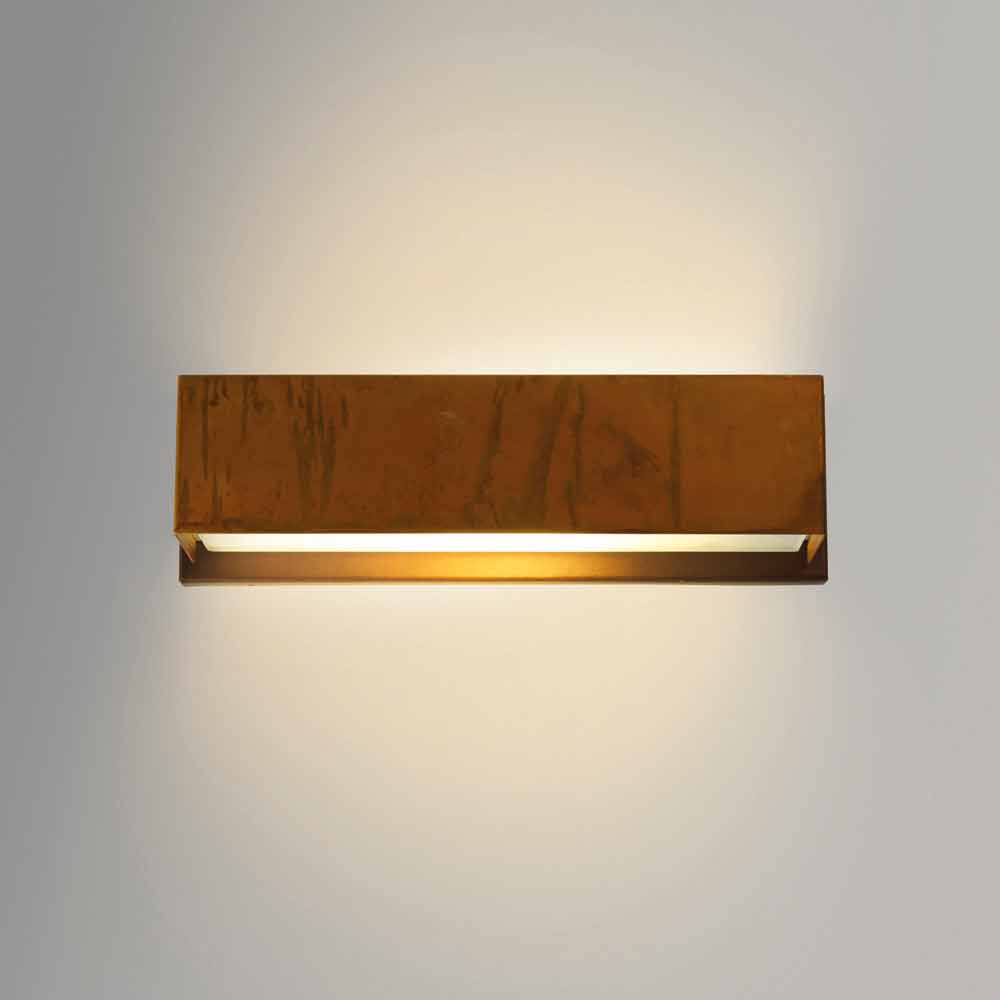 Lámpara de pared con estructura de latón oxidado y sub-base en acero con recubrimiento de polvo. Disponible en dos tamaños en forma cuadrada o redonda. difusor de vidrio templado para una emisión de luz directa e indirecta. Harya también está disponible en colores personalizados. Hacer una petición a: clienti@viadurini.it.