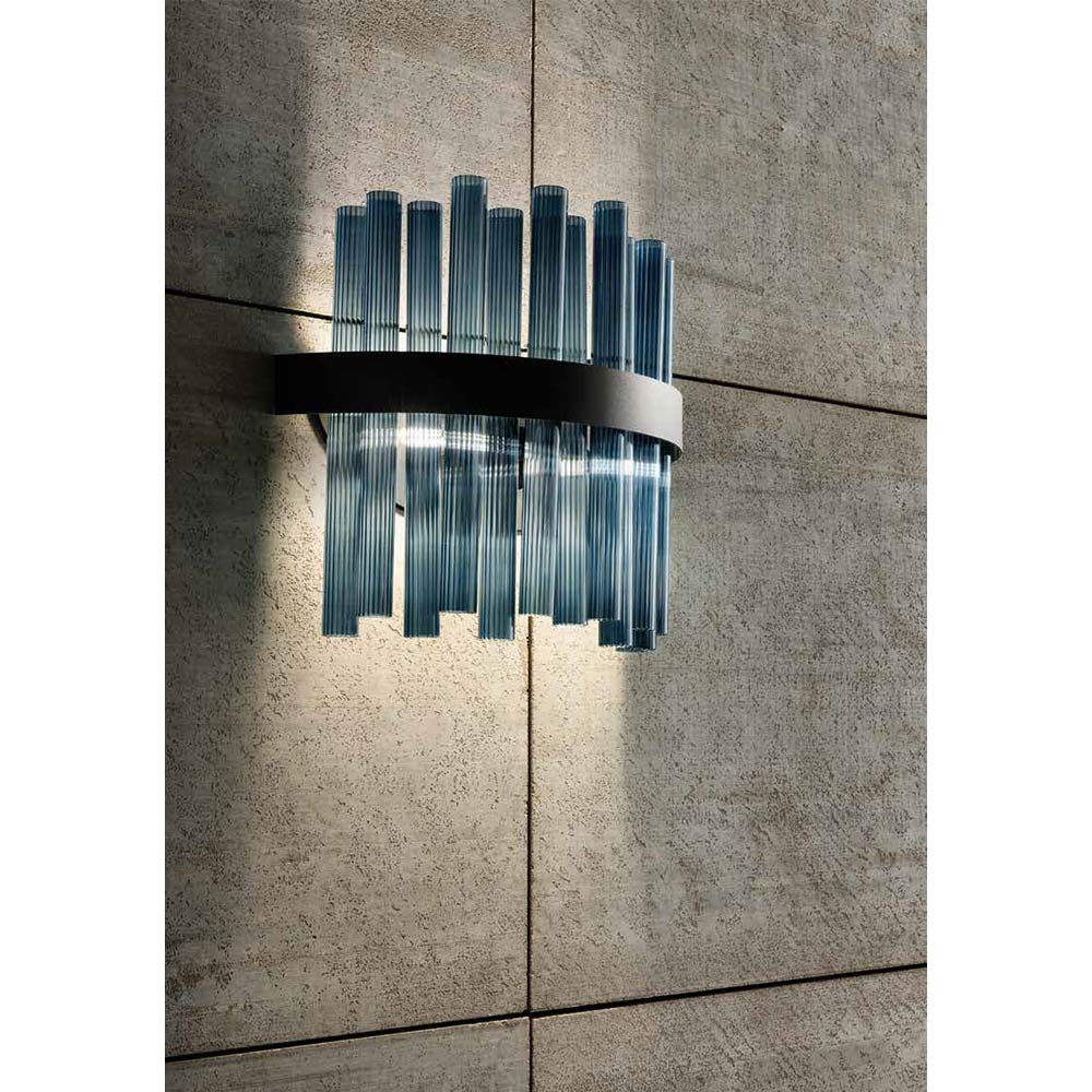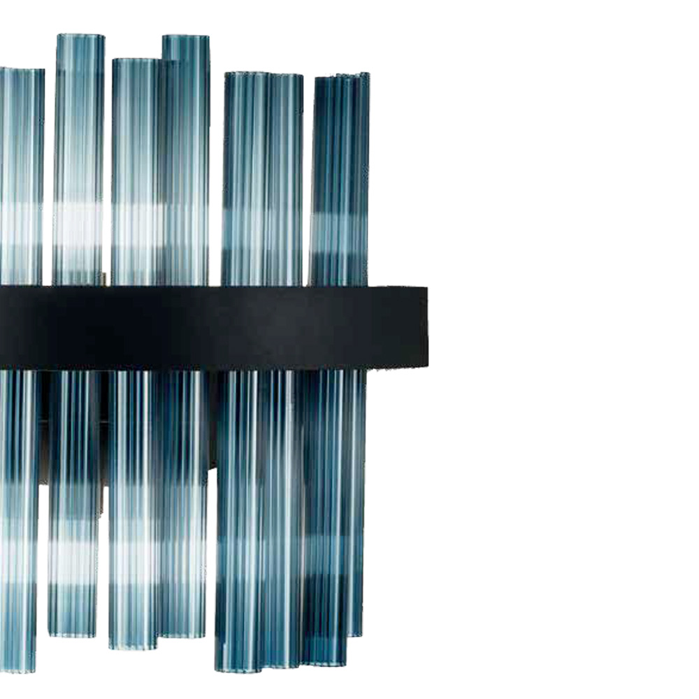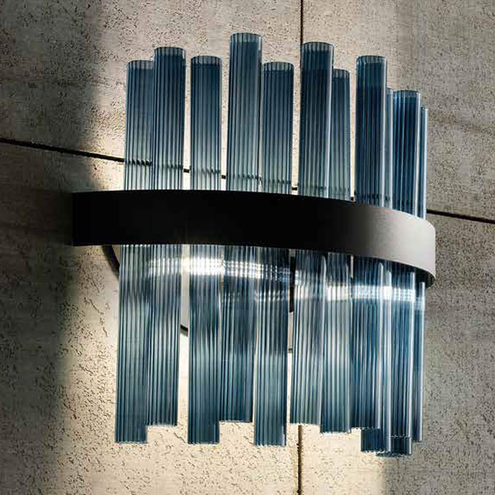 El aplique con un diseño moderno y refinado es un accesorio de iluminación de lujo completamente hecho a mano en Italia en vidrio soplado rayado y estructura metálica producida y pintada a mano.