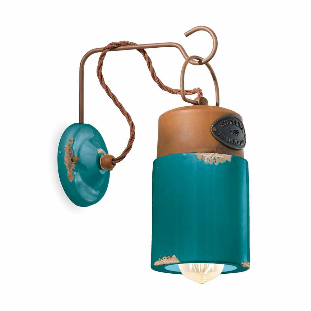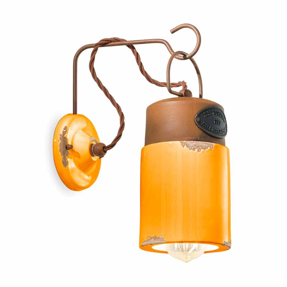 Aplique de cerámica y hierro oxidado Desiree de Ferroluce Desiree es un fantástico aplique de pared, con un estilo vintage e industrial, hecho a mano por expertos artesanos en Italia. Este precioso aplique se compone de una estructura de hierro en acabado óxido con un difusor realizado en cerámica brillo, disponible en diferentes colores. La estructura de metal, gracias a su acabado óxido, le da a Desiree un efecto envejecido y envejecido. El hierro, a través de un proceso artesanal especial, se trata de tal manera que se oxida naturalmente. Al final de todo el proceso, la plancha tiene un acabado brillante y liso. Otra peculiaridad de esta lámpara radica en la elaboración artesanal del difusor cerámico. La cerámica, de hecho, está decorada como si el tiempo hubiera marcado su camino. La reproducción de la erosión del tiempo combinada con las superficies brillantes le dan ese valor extra a este aplique. Este efecto desgastado le da a Desiree un sofisticado estilo industrial vintage. Ideal para decorar una casa de campo de estilo inglés. Este aplique creado para ambientes con un ambiente envolvente, es capaz de satisfacer los pedidos más exigentes gracias a un diseño único y original. Un diseño que se opone al lujo pero que convive armónicamente con él. Diseño que preserva la esencialidad del uso y tranquiliza con un delicado equilibrio entre formas y tonos. Desiree da vida a la luz pura y sin pantallas. Son estas formas simples y delicadas las que llaman la atención, y las que hacen que Desiree sea capaz de adaptarse a cualquier decoración, desde la más sencilla y minimalista hasta la más clásica, creando un delicado contraste. ¡Dale un toque de diseño también a tu hogar! ¡Pequeños detalles para un gran efecto con sabor antiguo! Lámpara disponible en diferentes acabados. ¡Consulta la carta de colores e introduce el código del acabado que deseas en la casilla correspondiente!